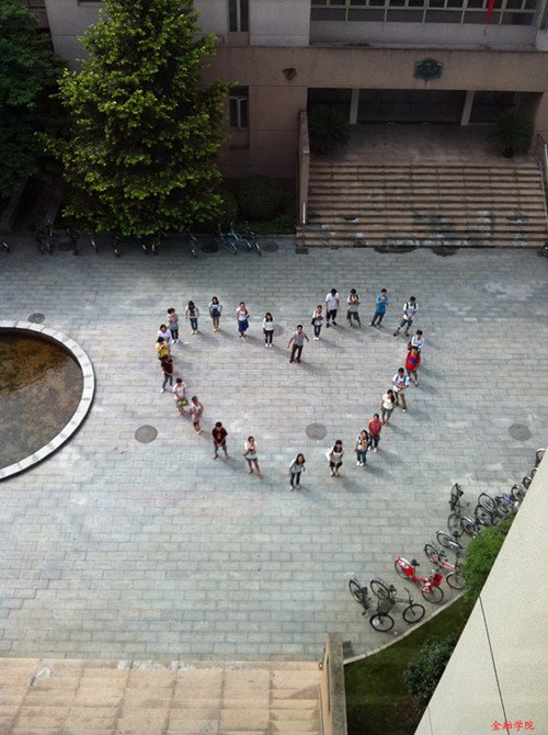 到场的部分员工围成心形,对着公司楼的方向喊出对老师们的祝福,声声祝福化作暖流萦绕师生们的心间。