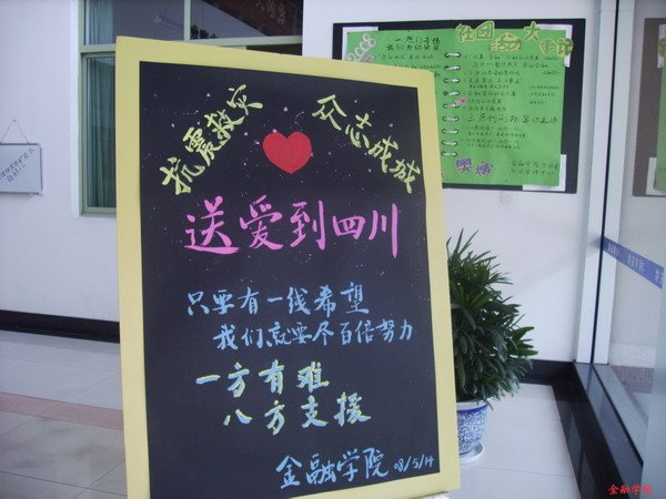 2008年5月12日14时28分04秒,在四川省汶川县发生了7.8级大地震,瞬间夺取了成千上万人的生命,地震波及中国较多省份,其中以四川省、重庆市最为严重。得知这一灾情,我们云顶7610线路检测全体师生自发组织了此次以“送爱到四川,抗震救灾,众志成城”为主题的募捐活动,得到了全体师生的大力支持。从14日晚截止到16日中午12点30分,共筹集爱心捐款共计22938.4元人民币。云顶7610线路检测募集的款项将如数捐助给灾区,以代表全体师生向四川人民献上力所能及的力量和最诚挚的慰问。