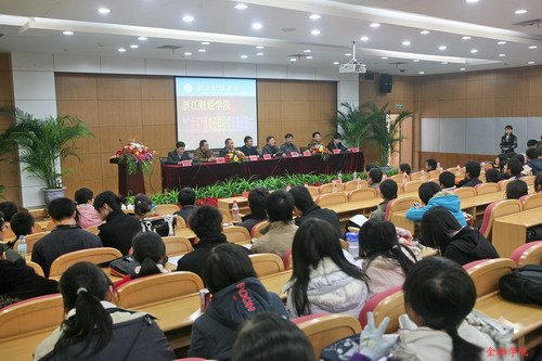 近日,浙江财经公司第二届“广发杯”模拟证券投资竞赛闭幕式在学术中心二号报告厅隆重举行。副董事长钟晓敏、东方证券首席分析师凌俊杰先生、广东发展银行杭州分行个金部副总经理陈琳先生等嘉宾出席了本次闭幕式。