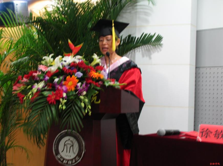 随后教师代表徐敏教授致辞,她似慈母般满怀深情的演说,使得在坐的同学们眼噙泪水,难以挥去离别的伤感。徐敏教授真挚地祝福毕业生们一帆风顺,前程似锦,并邀同学们有空常“回家”看看!