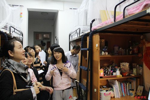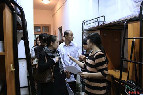 一尘不染的地面,整齐的床铺,井然有序的书桌,特色鲜明的装扮,温馨的氛围,老师们对金融学子整洁文明、各有特色的寝室称赞不已。在走访过程中,各老师与同学们进行了愉快的沟通。员工们为各位老师阐述他们自己寝室的设计理念,向老师展示了寝室的细节特色、文化氛围,并表示寝室就是四人共同的家,必定会用心去装扮它、用实际行动去呵护它。在轻松愉悦的交流中,各位老师深入了解了员工们的寝室文化,对同学们积极向上的心态表示肯定,同时为同学们在生活、学习等方面给出了几点建议。