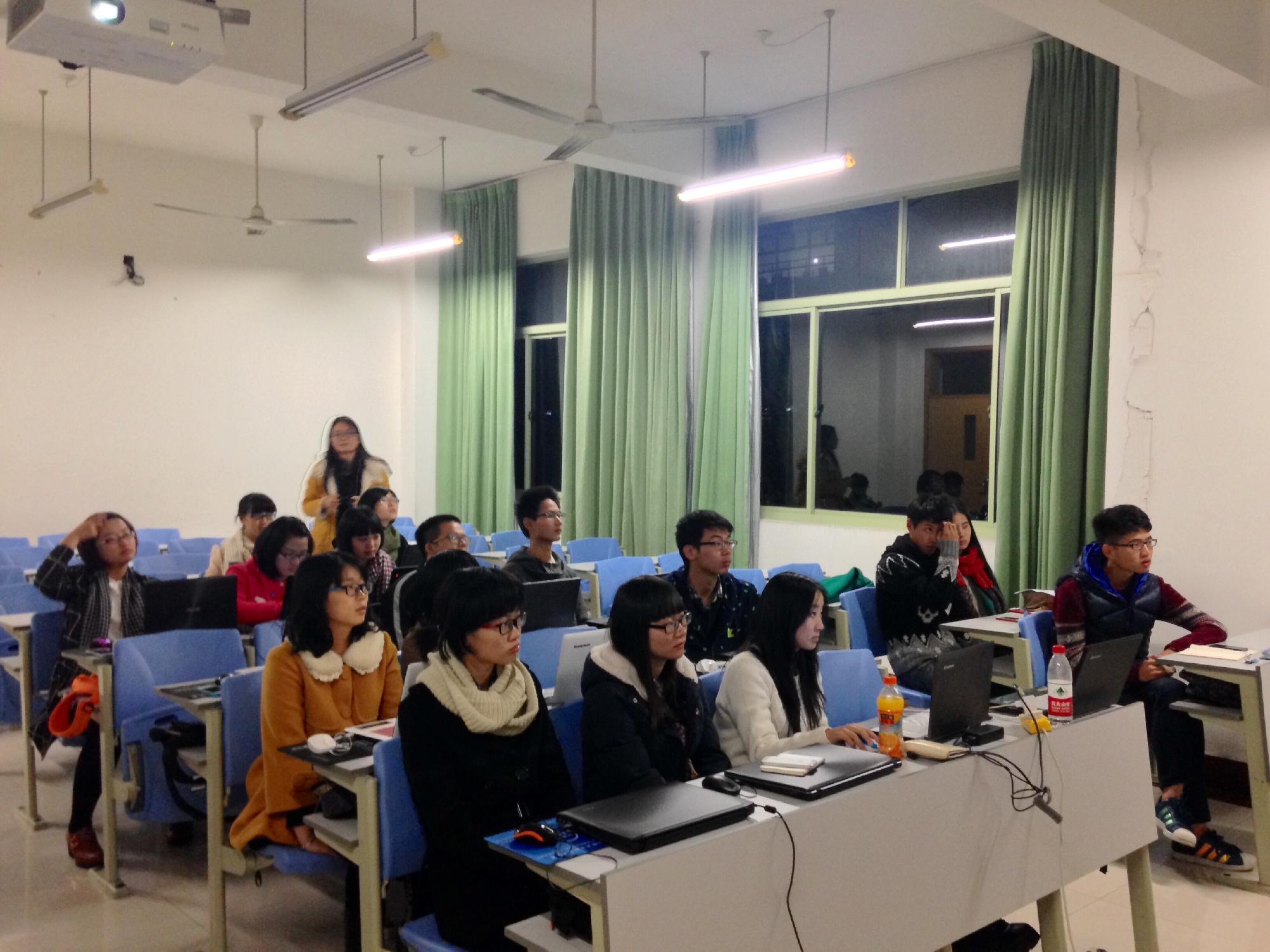 培训尚未开始,学员们便早早地聚集到了209,同学们的热情洋溢在脸上。首先,黄坤老师上台为学员们展示了其它公司的视频作品,并在播放过程中对视频中存在的优点和不足进行逐一的点评与讲解。黄坤老师幽默诙谐的讲解也让培训氛围显得轻松和谐,颇具挑战的视频制作也激励学员们不断学习取经,提高技能。随后黄坤老师对学员们进行了知识扫盲,用简单易懂的语言介绍了有关于机位摆放与不同镜头所表现的不同含义等相关知识。学员们听得格外认真,专心记录重点之余,对所讲内容深入思考,纷纷各抒己见踊跃提问。