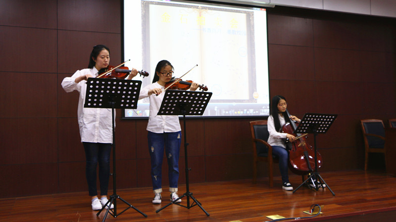 第二环节为书香拍卖,为响应读书节活动,拍品多为亲手制作的书签、书画,观众们举牌此起彼伏,很快,拍品全都被拍走。伴随着校艺术团西洋乐队的乐手们的一曲《Divertimenti》,现场的气氛也是越来越高涨。 第三环节中,风铃、明信片、武鑫老师亲笔签名书等等拍品更吸引同学们纷纷出手拍价。随着最后一个拍品被拍走,金石至诚拍卖会也到此结束了。