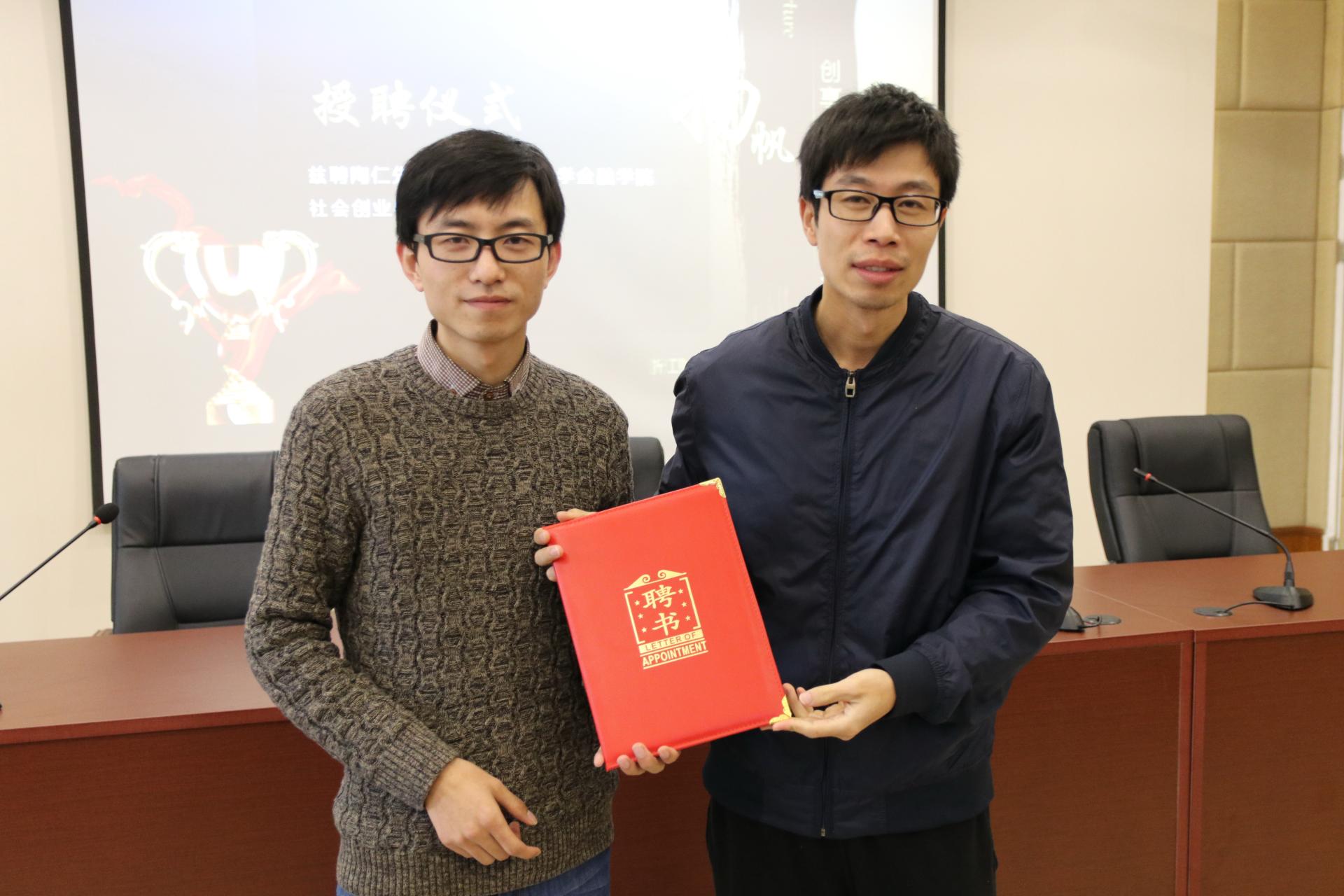 讲座一开始,蒋超老师为陶仁先生颁发了聘书,聘请他为云顶7610线路检测社会创业导师。