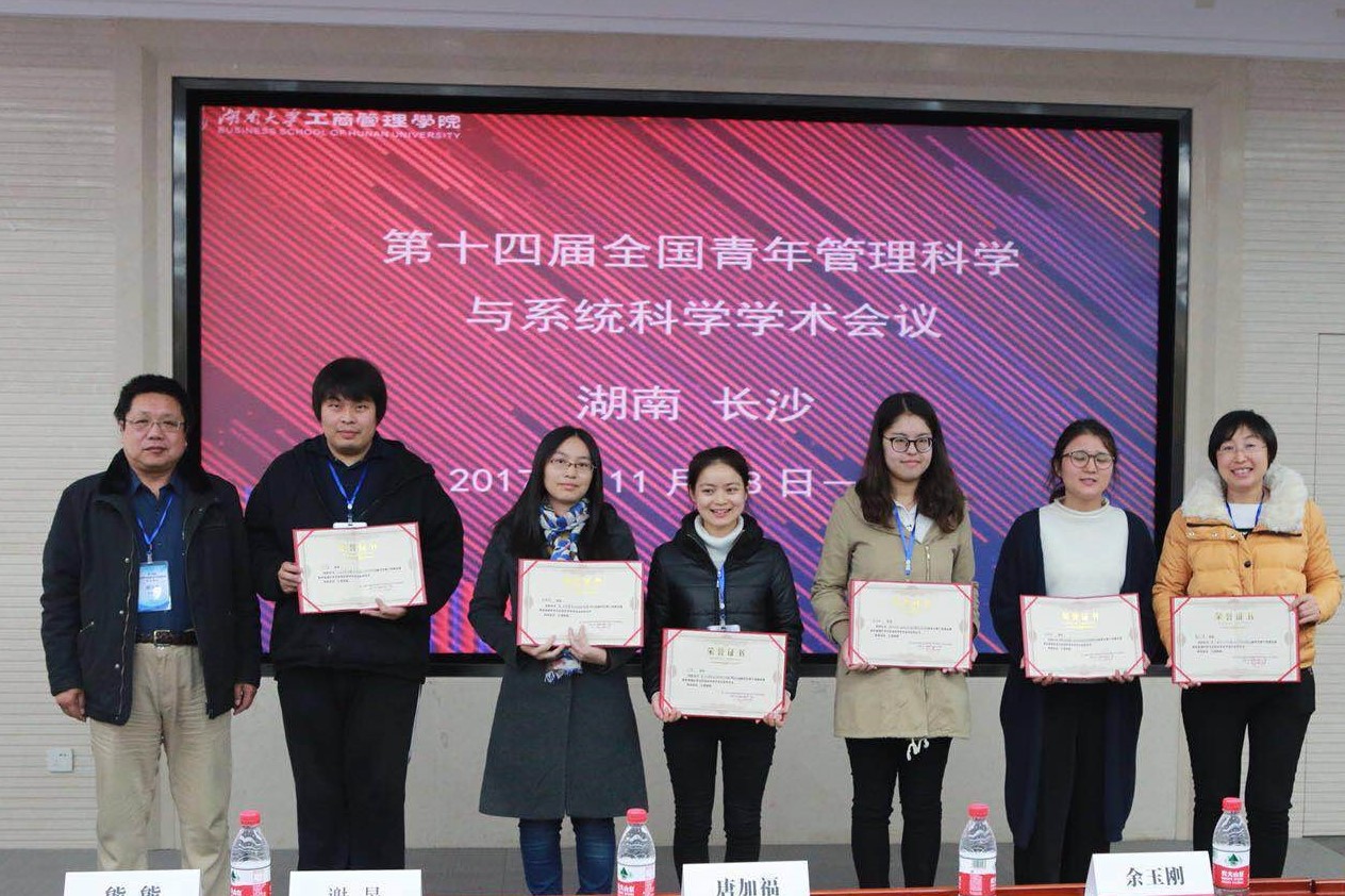 11月17日至19日,第十四届“全国青年管理科学与系统科学学术会议”在湖南大学召开。云顶7610线路检测研究生杜和佳、周寒娴等同学应邀参加会议。杜和佳同学在会上报告的论文《互联网金融理财产品信用价差影响因素研究》荣获优秀论文。
