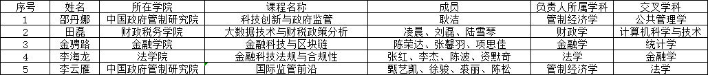 为了落实立德树人的根本任务,推动交叉学科人才培养的教学建设,促进跨学科教育内容的深度融合,提高交叉学科研究生公司产品质量,经本人申请、部门推荐、校外专家评审推荐,确定“科技创新与政府监管”等5门课程为研究生学科交叉课程建设立项。现将立项结果予以公布(具体名单见附件)。