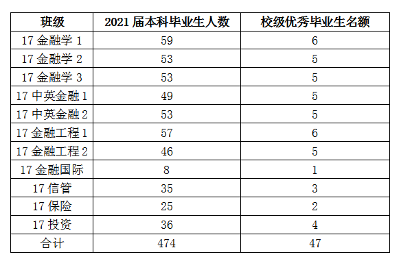 按各班级本届毕业生人数的10%的比例评选。具体名额分配详见下表: