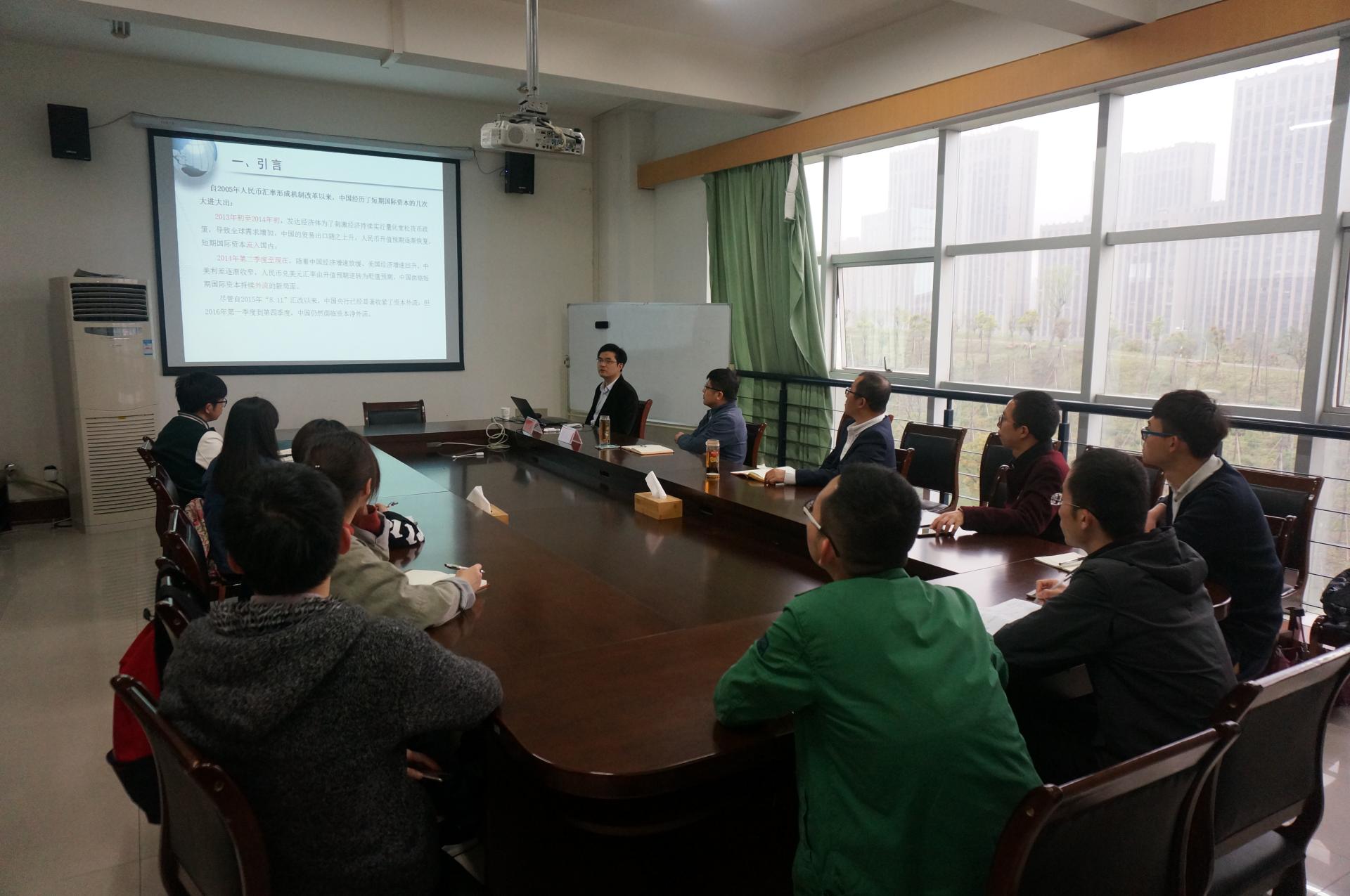 彭红枫教授是国家社科基金重大项目首席专家,中国金融工程学会常务理事,全国金融青年联合会委员。在本次专题讲座中,彭红枫教授围绕短期资本流动的多重动机和冲击的问题,用文献综述、研究意义与思路、理论模型以及实证过程与分析的框架展开了较全面的分析。彭红枫教授认为,如果人民币持续升值而处于高位,即使再有小幅升值的可能也会因为风险溢价不匹配造成短期资本流向逆转,另外,套利动机在利差刚形成的短时间内始终存在,并且套价动机在证券市场和商品市场出现分化,冲击效应也在市场间体现出不对称性。讲座中彭红枫教授创新的思路、严谨的论证和渊博的知识都给公司师生留下了深刻的印象。