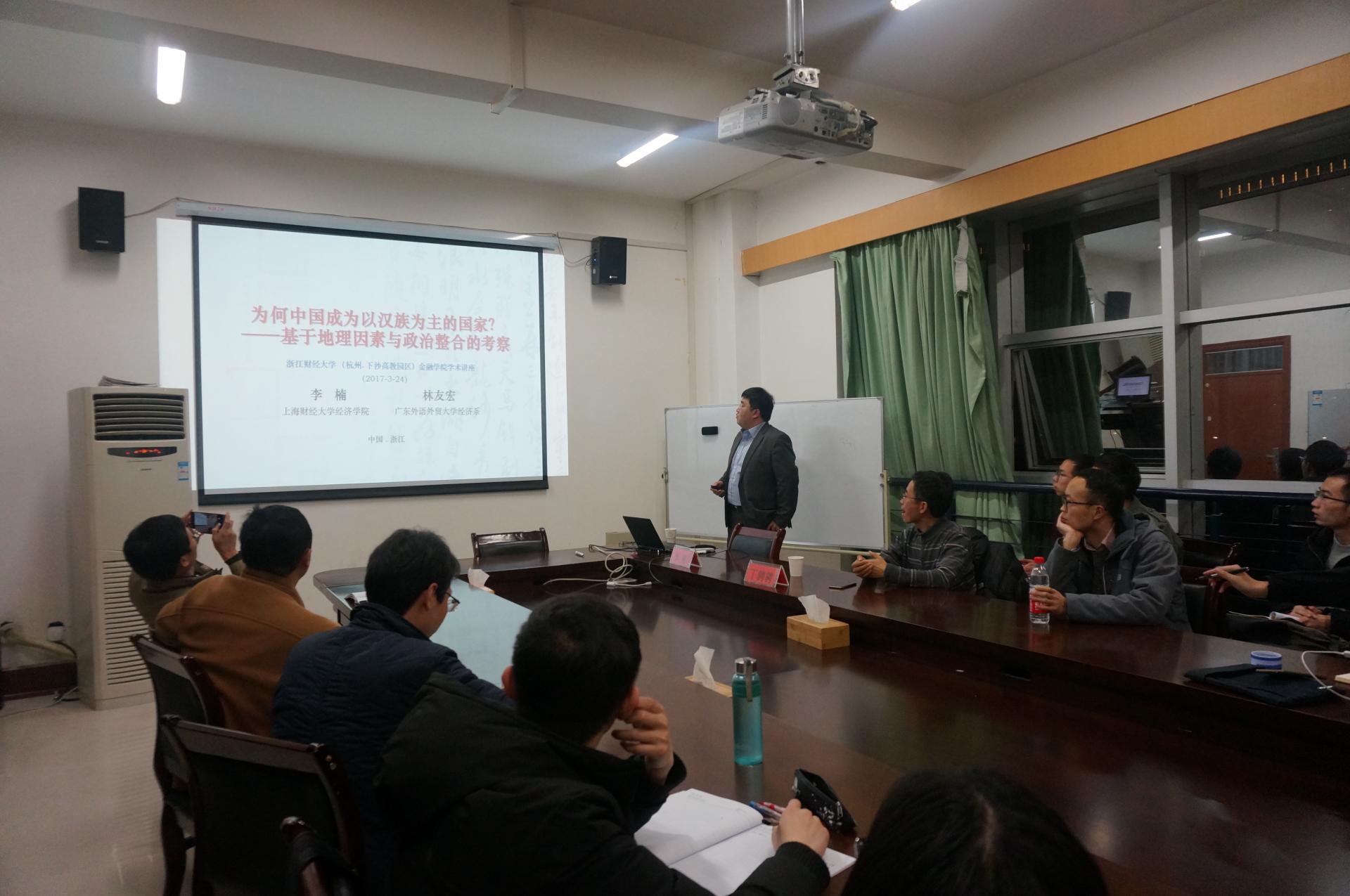 3月24日晚6:30在3号楼422室上海财经大学经济公司经济史副教授、上海财经大学讲席副教授、博士生导师李楠应邀作了题为“中国如何成为以汉族为主体的国家?基于地理环境与政治整合的考察”的学术报告。本次报告由云顶7610线路检测丁骋骋教授主持,云顶7610线路检测多名教授及研究生出席讲座。