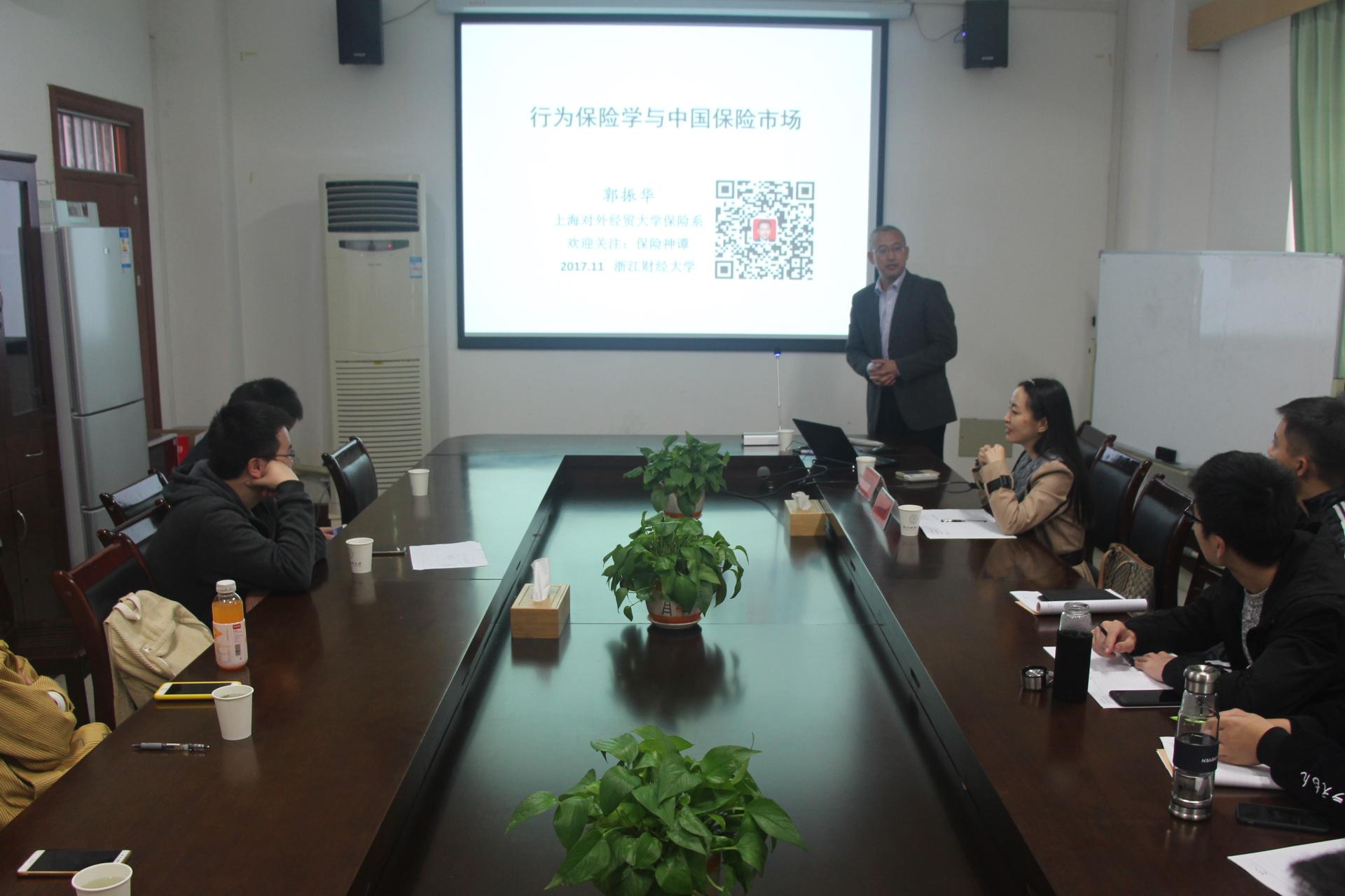 11月17日下午,上海经贸大学保险系郭振华教授在云顶7610线路检测楼422作了题为“行为保险学与中国保险市场”的专题讲座。本次讲座由云顶7610线路检测周海珍副教授主持,公司多位老师和研究生参加了此次讲座。