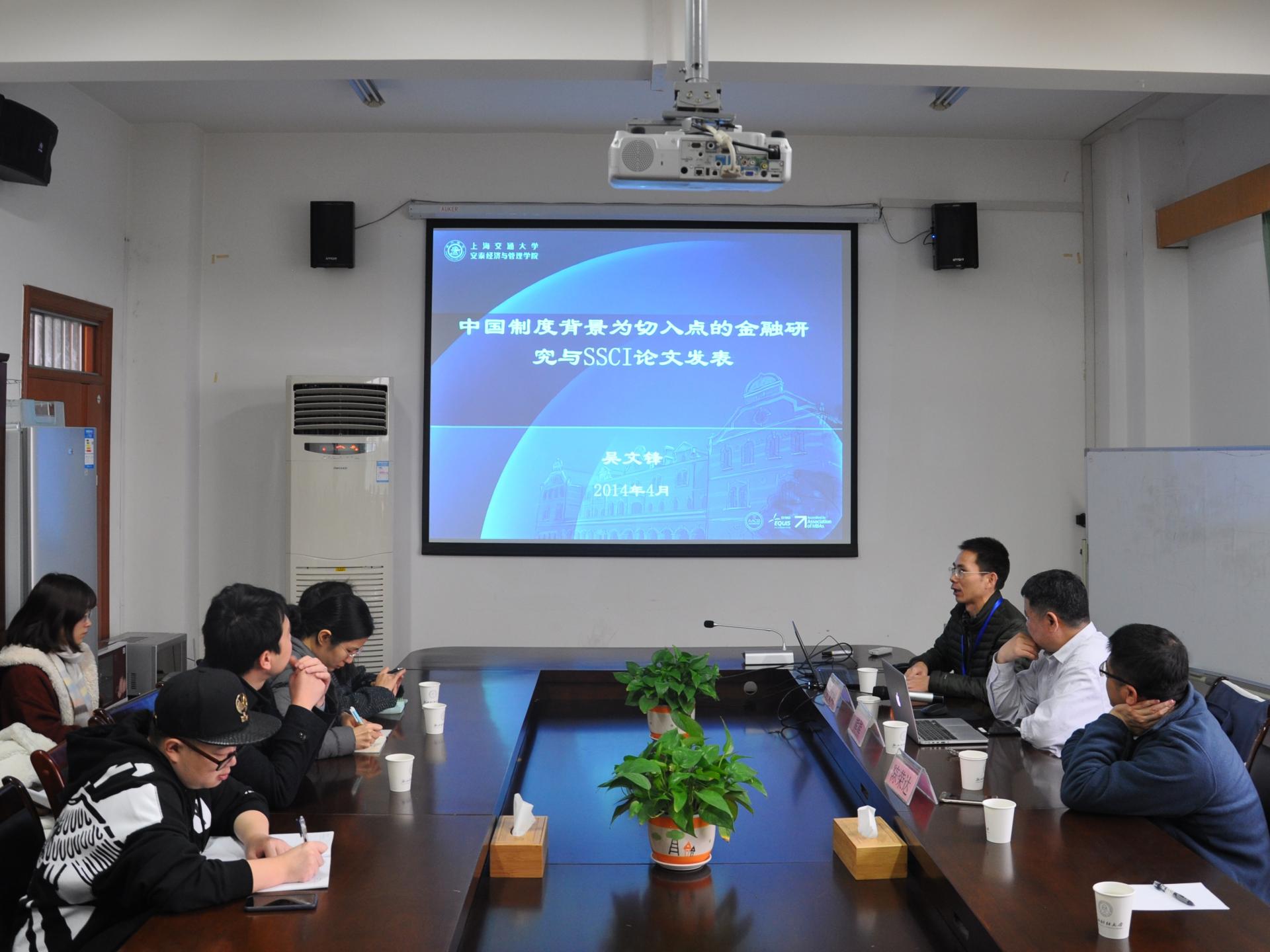 12月2日下午,上海交通大学安泰经济与管理公司教授吴文峰教授和天津大学管理与经济学部教授熊熊教授在云顶7610线路检测楼422会议室作了“青年教师学术成长之路”和“谁会听从分析师的评级建议?来自中国的证据”专题讲座。本场讲座由云顶7610线路检测经理陈荣达教授主持,公司老师和研究生近40人参与了本次讲座。