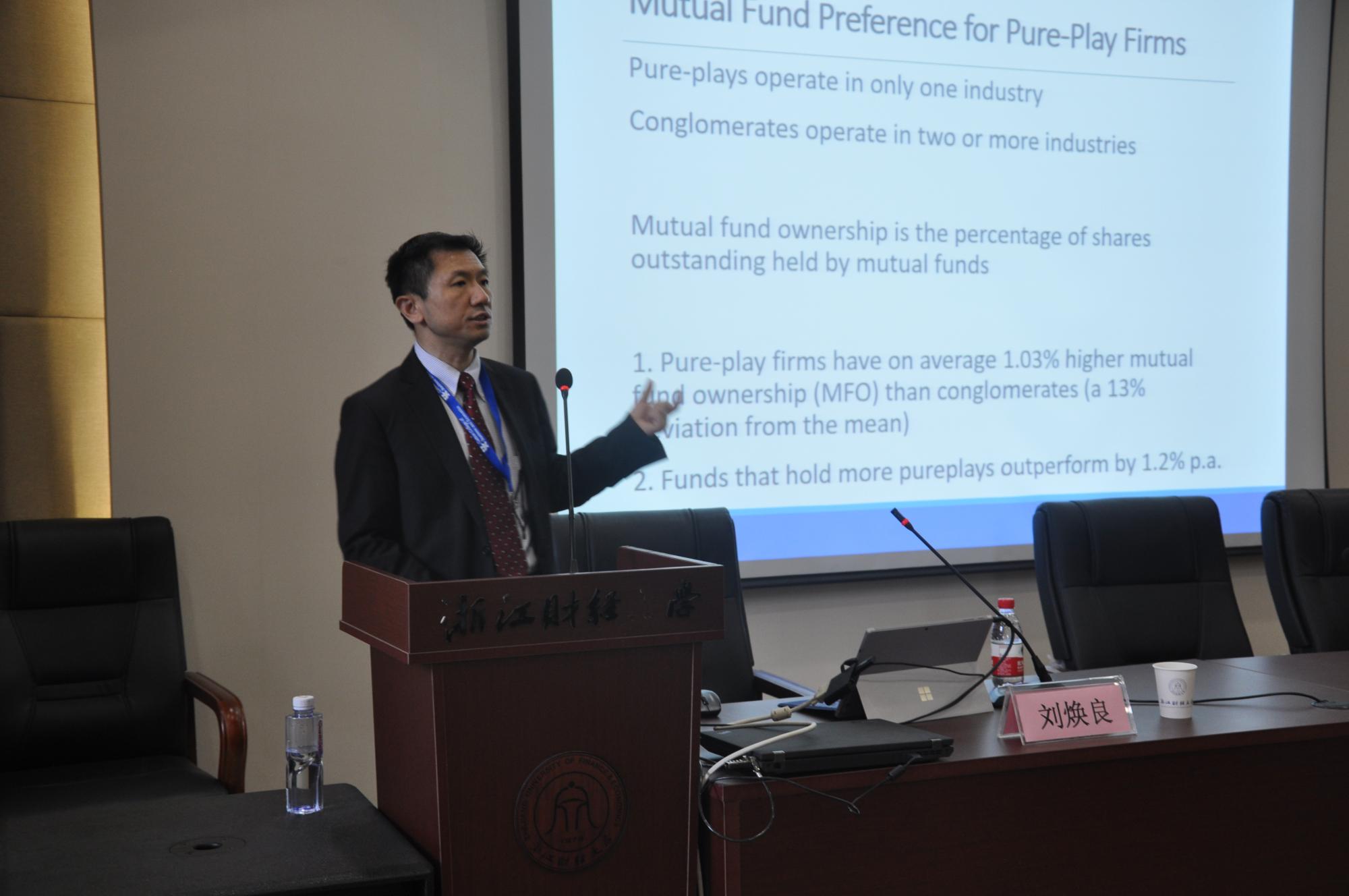 2019年5月14日下午,美国肯塔基大学盖顿商公司金融学终身教授刘焕良教授应邀在云顶7610线路检测2楼报告厅作了题为 “Mutual Fund Preference for Pure-Play Firms”的学术讲座,云顶7610线路检测多名老师及员工出席了该场讲座。