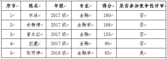 根据财教〔2012〕342号《研究生国家奖学金管理暂行办法》和浙财大[2018]179号《云顶7610线路检测研究生国家奖学金评审办法》等文件精神,以《云顶7610线路检测研究生学业奖学金评选指标体系》为参考,以云顶7610线路检测研究生国家奖学金实施细则为标准,报请云顶7610线路检测国家奖学金评定委员会评定结果公布如下: