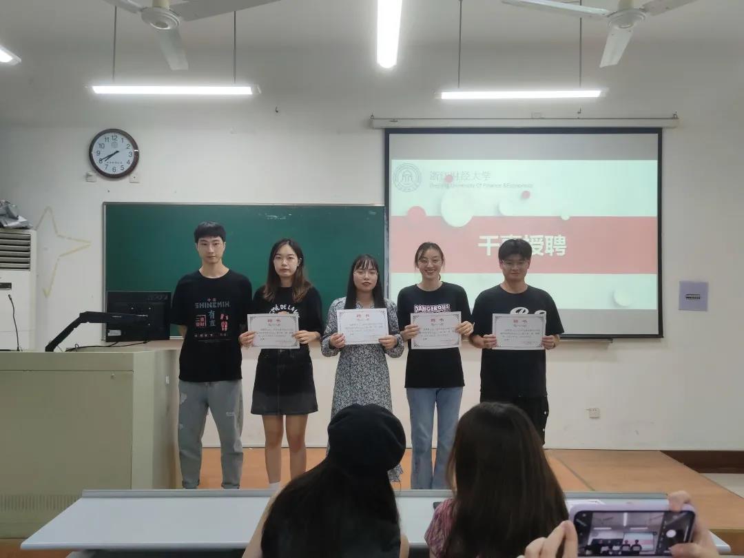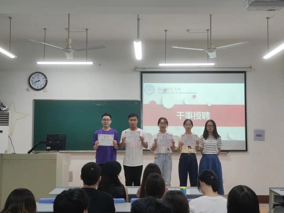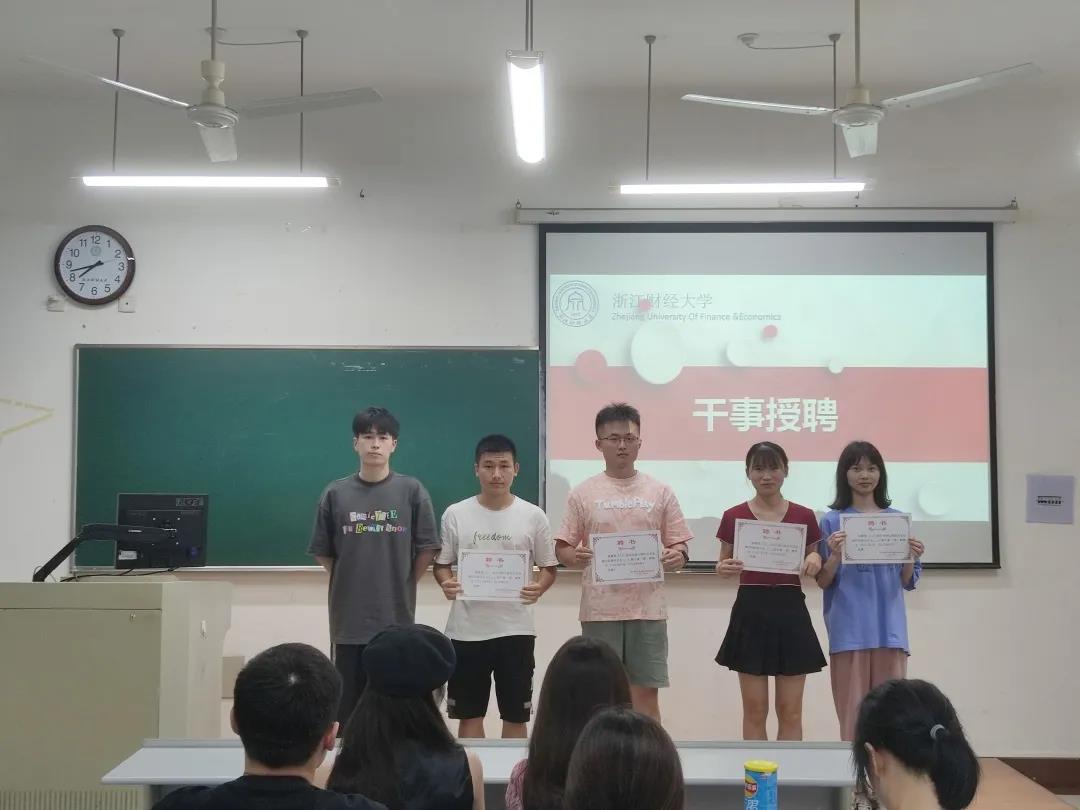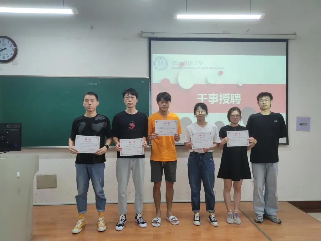 由前研会主席许奕韬授予各位新晋部长聘书,并对各部长表示欢迎和祝贺,各位部长拍照留念,共同见证研会大家庭的发展成长。随后,各个部门部长给各自新晋干事颁发聘书,携手各位干事一起努力,见证部门的成长,各位部员也将坚定信心,为研会贡献一份自身的力量。