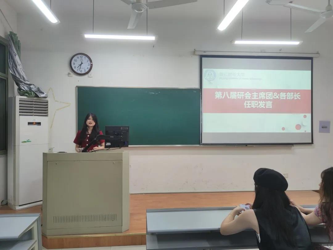 最后,第八届研会主席胡伦祯、姚昕怡进行了总结性的发言,作为新晋主席,他们将携手各个部门的部长和部员一起打造更加完美优秀的研会大家庭,不负众望。