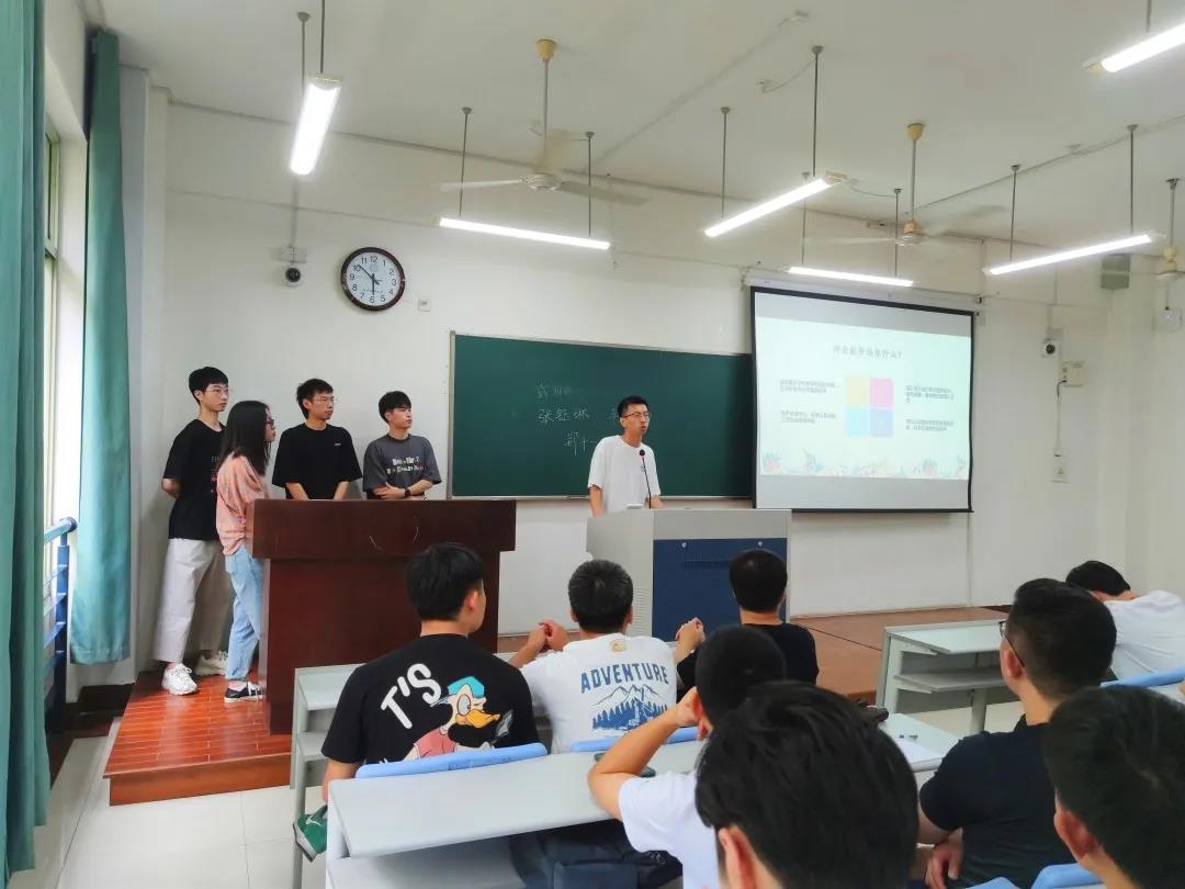 为了更好的熟悉彼此,新生们依次上台自我介绍,分享自己的兴趣爱好,广结好友,形式各异的自我介绍拉近了新生们彼此之间的距离,加深了解,增进感情。