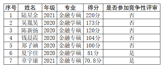 根据财教〔2012〕342号《研究生国家奖学金管理暂行办法》和浙财大[2018]179号《云顶7610线路检测研究生国家奖学金评审办法》等文件精神,以《云顶7610线路检测研究生学业奖学金评选指标体系》为参考,以《云顶7610线路检测研究生国家奖学金实施细则》为标准,报请公司教授委员会评审讨论,公司研究生奖助学金评审委员会投票评定,公司初评结果公布如下: