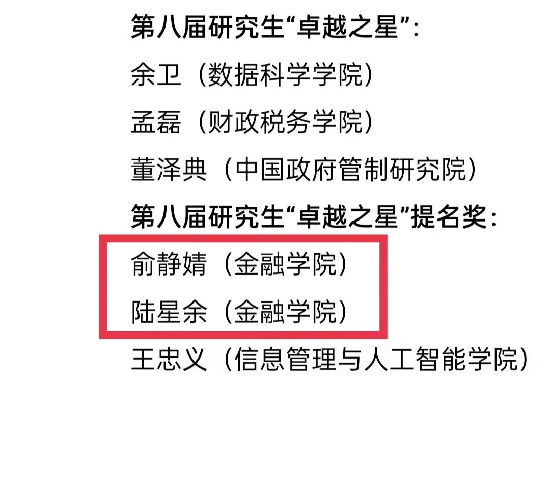 热烈祝贺公司20级博士研究生俞静婧、21级硕士研究陆星余荣获第八届研究生“卓越之星”提名奖!