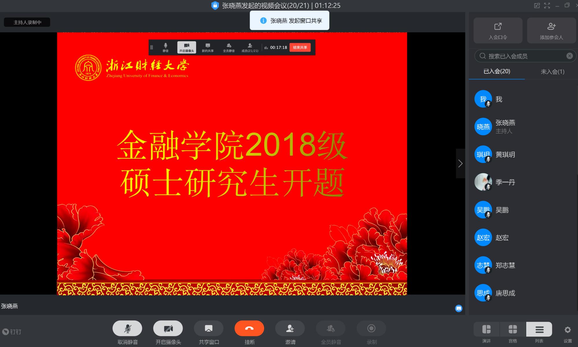 近日,我院18级83名硕士研究生通过云端视频形式完成了学位论文开题。