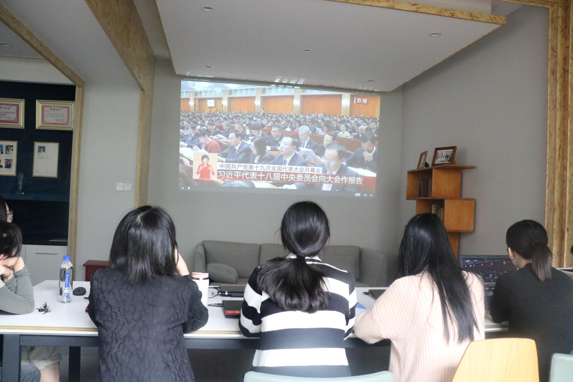在庄严肃穆的国歌声中,中国共产党第十九次全国代表大会正式开幕,在场的党员们认真聆听了习近平总书记在十九大中所作的报告。会后,各支部进行了分组学习讨论。
