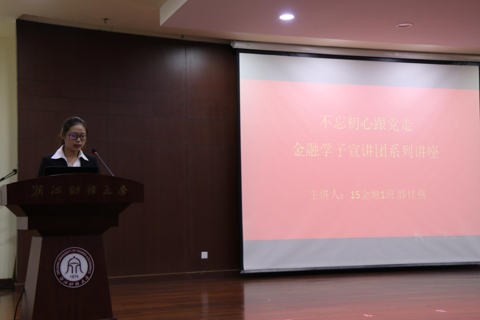 宣讲团成员15金融滕佳燕,是云顶7610线路检测邓小平理论读书会会长。她以“不忘初心跟党走”为主题与大家分享了参加十九大精神专题学习会后的感受,同时也分享了自己的入党经历,号召团员青年要端正入党动机,积极参加党章学习小组组织的各项活动,扎实学好政治理论知识,争取思想上先入党,行动上以党员的标准要求自己。