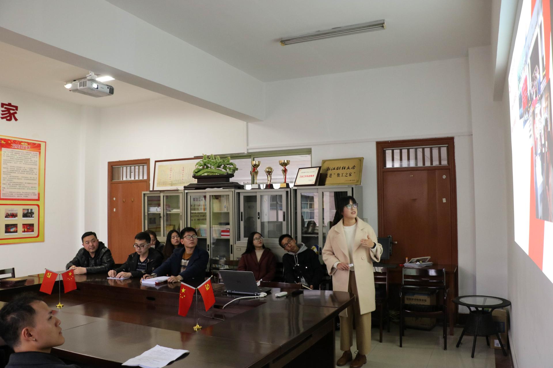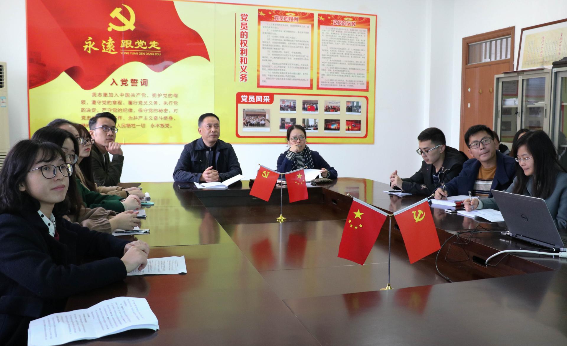 最后,蔡国金书记进行总结讲话,他认为各党支部采用了新颖的载体,结合工作学习生活实际开展支部活动,非常值得肯定。希望各党支部深刻把握十九大精神,将十九大精神落到实处,坚持做创新工作,持之以恒,精益求精。此外,蔡书记还回顾了各党支部前一阶段学习贯彻十九大精神的相关活动,肯定了各支部的做法,并对下一阶段的学习任务进行了布置提了要求:一要在学深学透上下功夫,要深刻领会,全面准确把握十九大精神,特别是“新时代”、“新思想”、“新矛盾”、“新方略”等内容;二是学习形式要多样化,通过个人自学、支部集体学、网络媒体学、专家辅导报告,结合实践活动,多途径学习;三是贯彻落实讲结合,将十九大精神学习与教学科研、人才培养、社会服务及学习生活相结合,并在实际学习生活中贯彻落实。