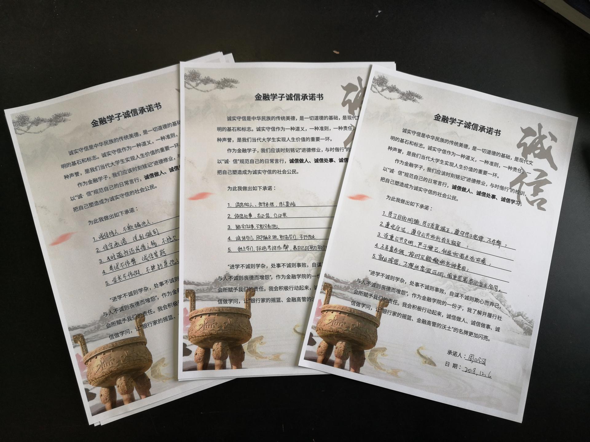 近日,公司党委开展了签订《金融学子诚信承诺书》活动,活动由各支部书记负责。本科和研究生共184名员工党员,围绕“诚信做人、诚信处事、诚信学习”做出了自己庄严的承诺。