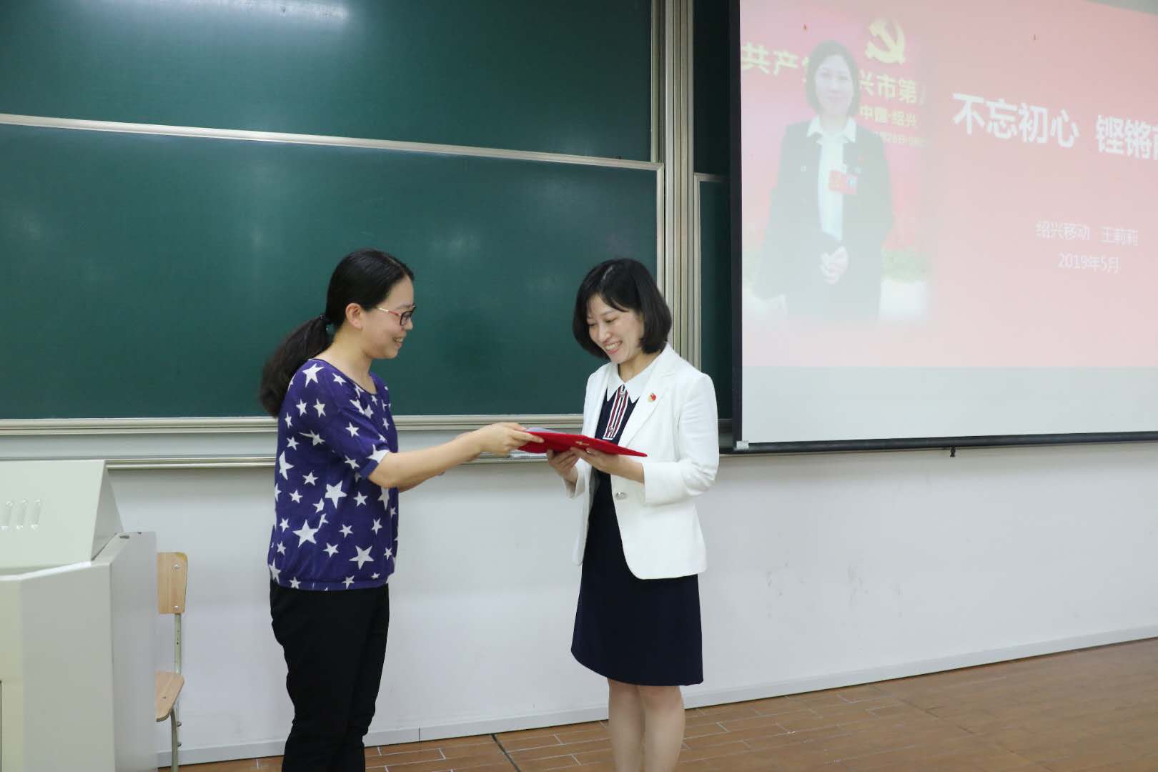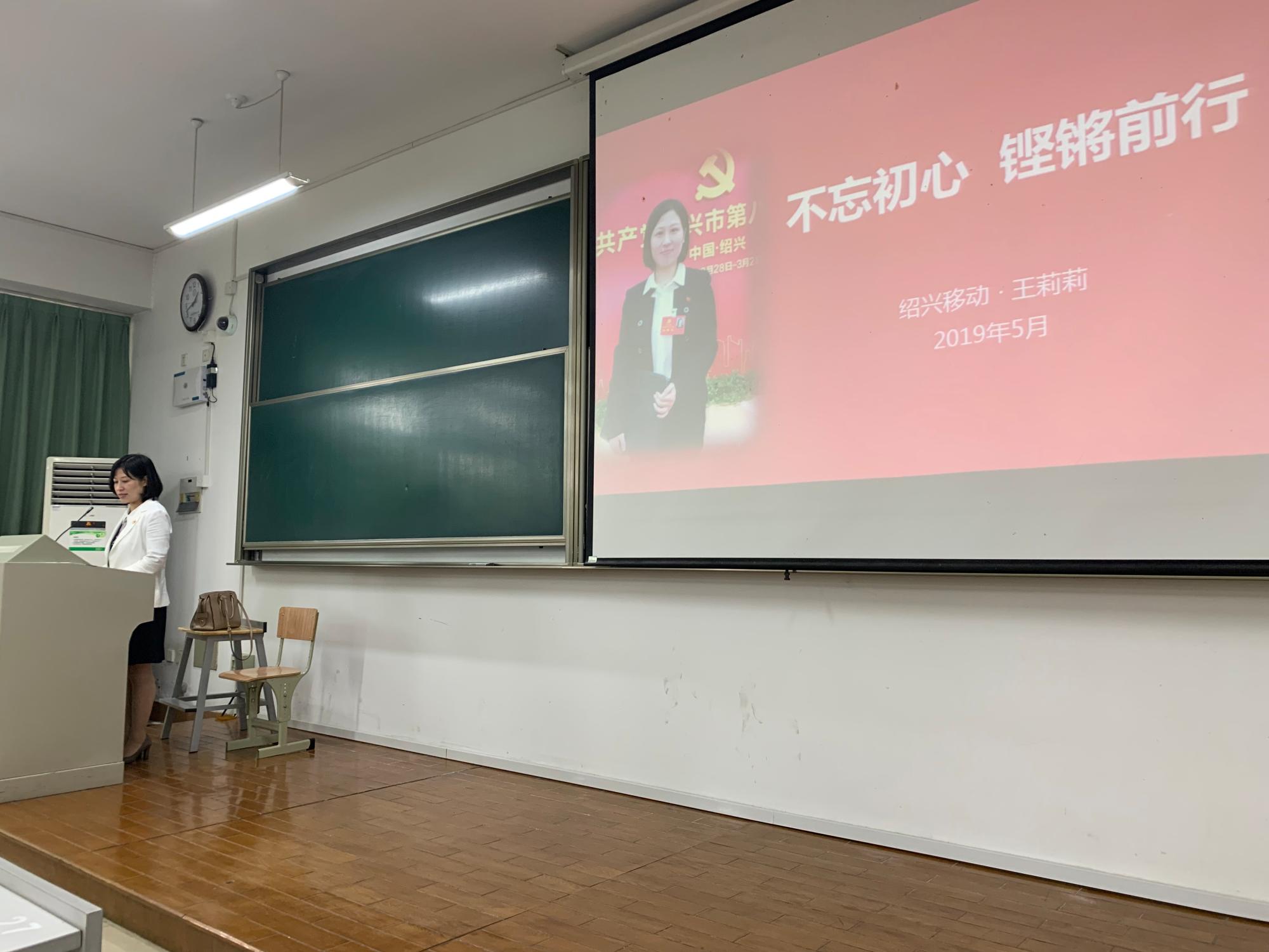 5月18日下午,2004届金融学优秀员工、现任中国移动绍兴分公司政企部重要客户中心主任绍兴王莉莉为公司入党积极分子上了一堂题为“不忘初心,铿锵前行”的生动党课。