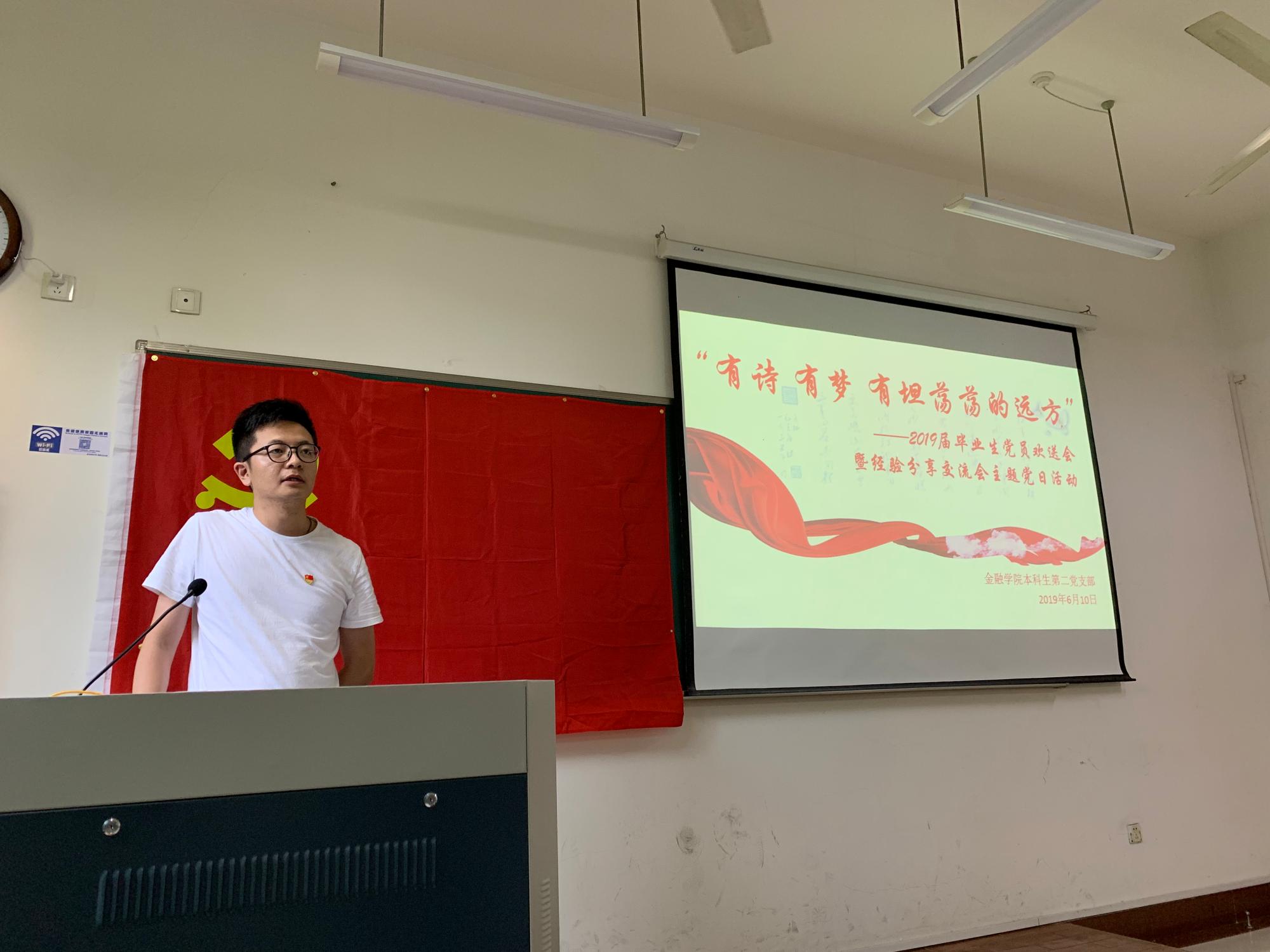 6月14日下午,公司党委副书记兼纪委书记叶秀在3号楼102教室对即将走向工作岗位的毕业生党员进行集体座谈,从政治纪律、组织纪律、廉洁纪律、工作纪律、生活纪律五个方面对毕业生党员提出希望和要求,并结合自身体会、金融行业实际以及鲜活案例,为毕业生党员敲响警钟。叶书记强调,每一位毕业生党员都要做到政治素养过硬、组织纪律严明、工作认真负责、生活作风端正、注重党性修养,将廉政意识牢记在心;牢记“进德修业,与时偕行”的校训,以党章党规明确标准,以习近平总书记系列重要讲话精神武装头脑,不忘初心,牢记使命,砥砺前行。