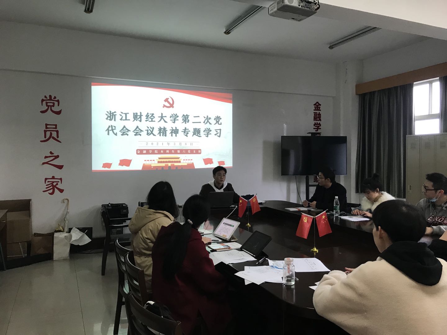 会议伊始,支部书记卢轩宇带领全体党员学习并讨论了公司第二次党代会的具体内容和公司党委书记李金昌同志在会上所作的报告。在座的党员同志纷纷表示,作为在校的党员师生,从报告中看到了公司近年来的累累硕果,看到了“七个必须”的基本经验在浙财的坚持和贯彻。与此同时,报告中脚踏实地、目标明确地擘画了公司未来发展的宏伟蓝图,提纲挈领、掷地有声地提出了从严治党进一步迈上新台阶的多项举措,让全体党员都得以登高望远、展望未来,起到了振奋精神、鼓舞人心、凝聚民智的作用。卢轩宇同志提出,作为党员师生,要把学习贯彻公司第二次党代会精神与做好当前工作相结合起来。谋划长远,重在当前,扎实做好当前工作。