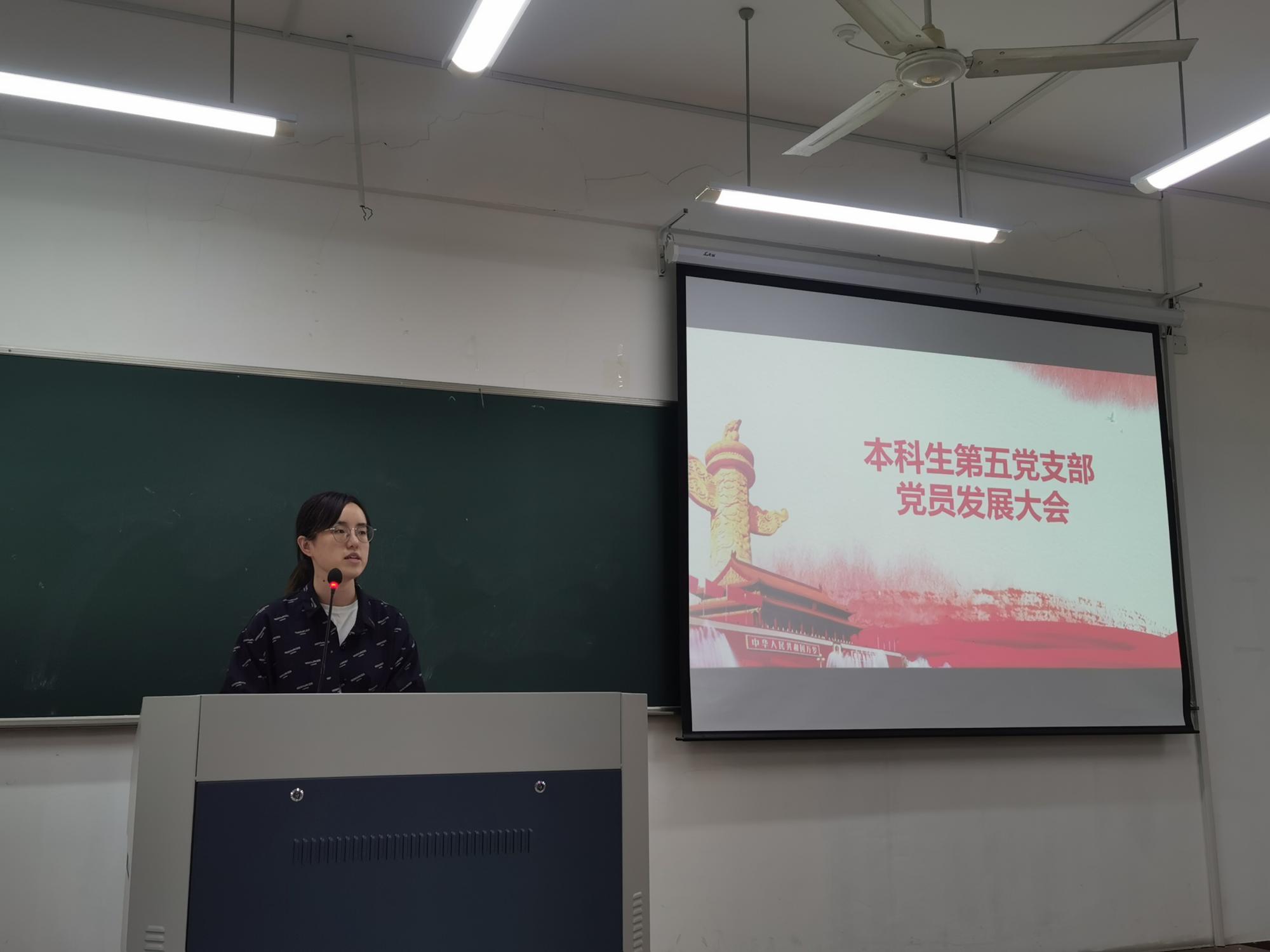 本科生第五党支部于2021年5月20日在云顶7610线路检测楼106召开党员发展大会暨支委成员讲党课,支部全体正式党员、预备党员、本次发展对象参加了此次大会。会议由党支部书记沈晓云主持。