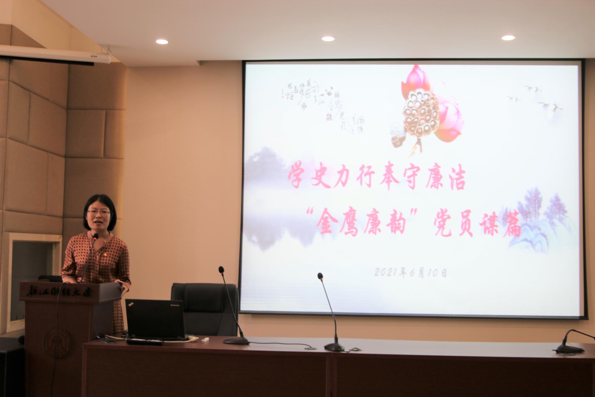 谢敏在仪式上宣读参加宣誓的新党员名单,并以《学史力行奉守廉洁 “金鹰廉韵”党员谋篇》为题给大家上廉洁教育党课。她强调,“老员工党员是党的未来,其清正守廉关乎党内的纯洁性,对保持党的生机有着重要的意义。”她结合公司的“金鹰廉韵”廉洁教育品牌建设,以及同学们在校生活学习中的实例,对新党员提出三点要求:主动开展廉政学习教育,树立廉洁意识;将思想内化为廉洁行为,养成廉洁习惯;积极影响和带动身边同学,营造廉洁的氛围。希望大家要对标高要求,严格强自律,系好新党员入党的第一粒扣子!