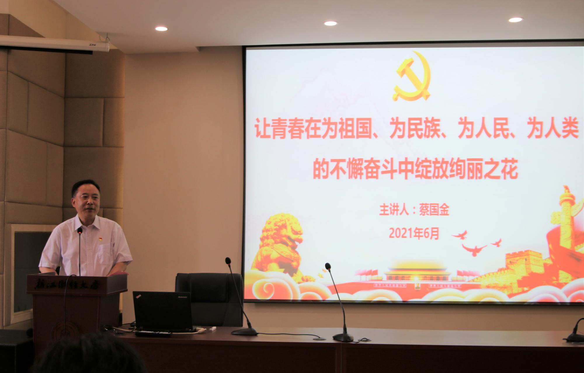 活动伊始,蔡国金代表公司党委向120名光荣跨进组织大门的新党员表示热烈的欢迎和祝贺,并给大家讲授《让青春在为祖国、为民族、为人民、为人类的不懈奋斗中绽放绚丽之花》专题党课。他结合学习《中国共产党章程》、学党史、学《中国共产党普通高校基层组织工作条例》等内容,对新党员提出了三点希望:一是要加强政治理论学习,不断提高政治思想素质;二是要认真参加组织生活,不断加强党性锻炼;三是要不忘初心牢记使命,充分发挥先锋模范作用。蔡书记激励广大新党员“无论以后在任何时候、任何地方、从事任何行业,都要时刻牢记自己是一名共产党员,坚持以党章的标准来严格要求自己,时时处处发挥好党员的模范带头作用,为中华民族的伟大复兴贡献自己的力量。”