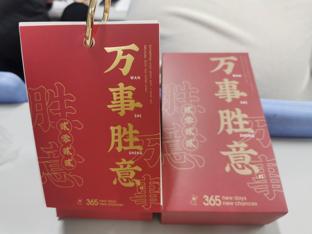 在“慢递”环节,支部为各位党员准备了台历作为新年礼物,支部党员们畅想未来,在2022年台历末页写下明年对个人以及国家的希望与憧憬,希望以此引导青年一代坚定历史自信。