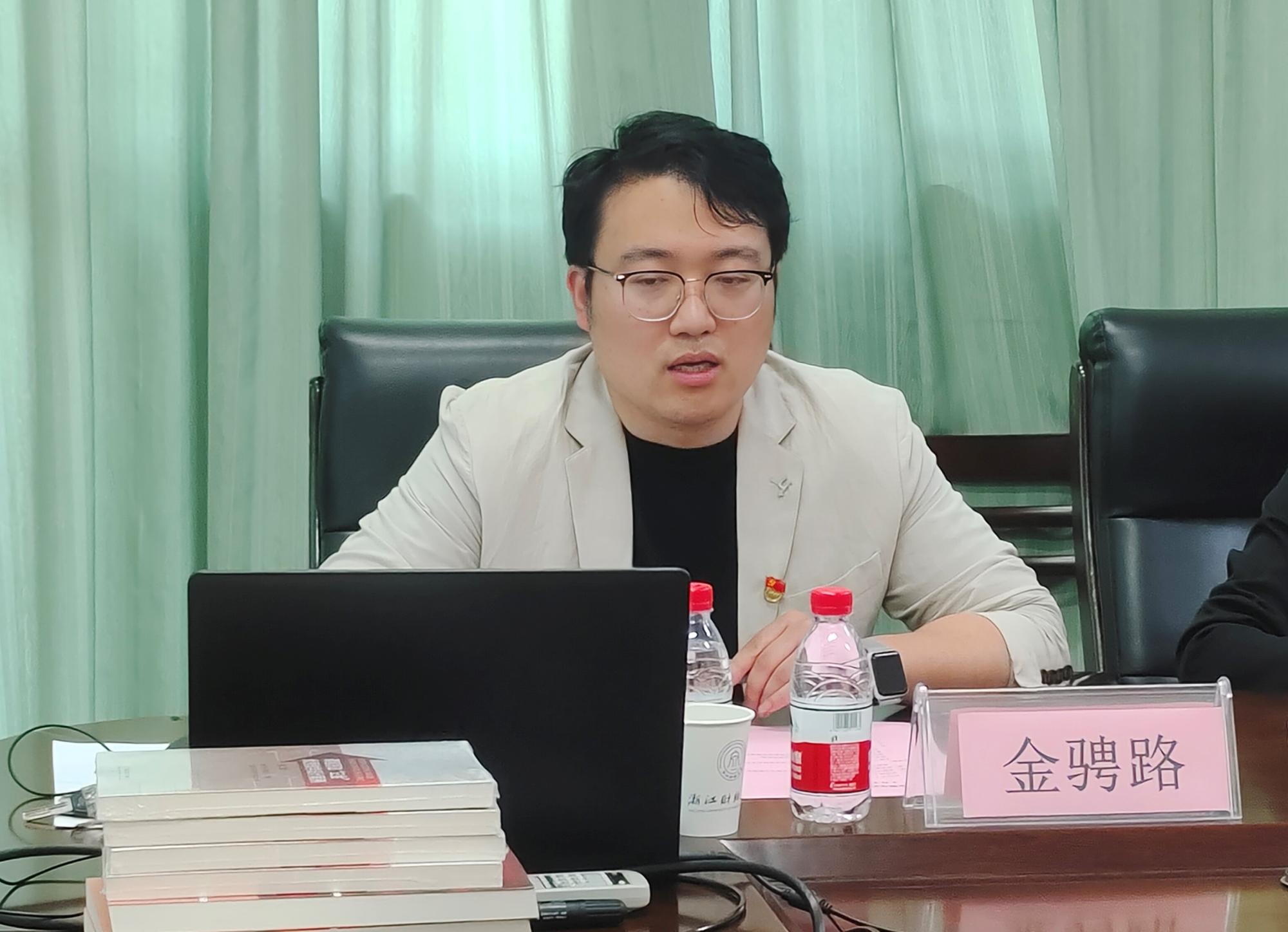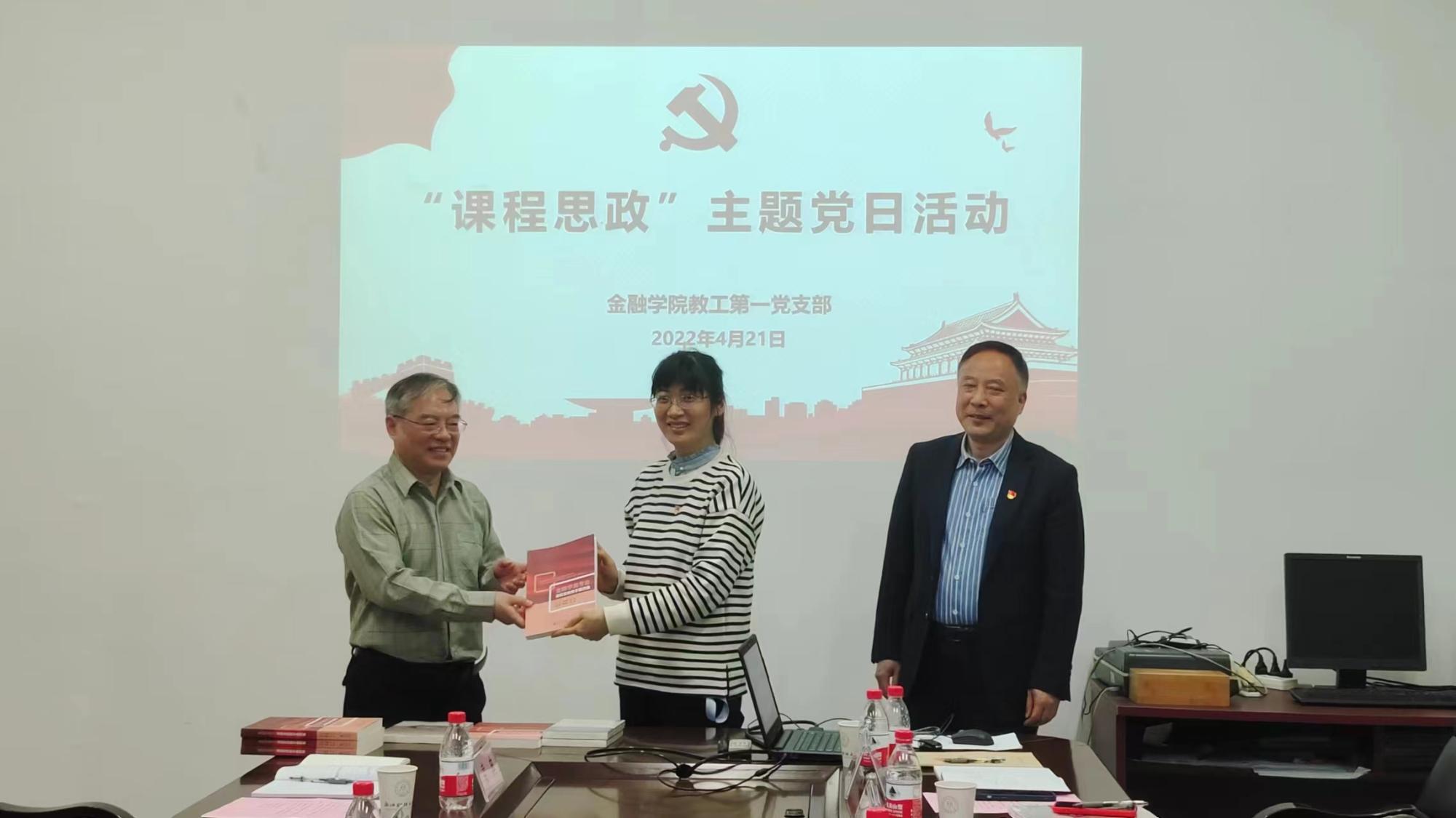 首先,教工第一党支部书记金骋路结合金融学专业建设向大家介绍了课程思政建设背景。他强调在金融学专业培养目标中,“良好的思想政治素质”应排在首位,课程思政建设的基础在课程、重点在思政、目标是立德树人,“我们要在教学的过程中,与员工做同行者,以多思维、多角度去进行思政教育。”