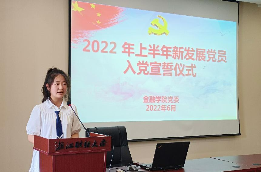 新党员代表李艾凌同学进行了发言,向党组织承诺将把入党誓言“终生铭记,身体力行”,在工作中、学习中、生活中处处以党员标准严格要求自己,积极参加组织活动,真正做到从思想上和行动上入党,为党的建设做出应有的贡献。