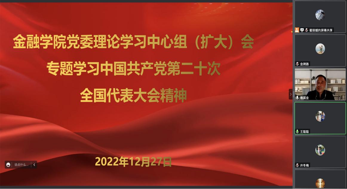 蔡国金领学了二十大报告中有关全面从严治党和教育工作的新要求新部署。他指出,我们要深入学习贯彻党的二十大精神,与公司实际相结合、与公司建设发展相结合、与人才培养相结合,坚持社会主义办学方向,坚持立德树人根本任务,坚持以员工为中心,进一步提高新财经人才培养质量,为浙江省两个先行,为全面建设社会主义现代化国家作出应有贡献。