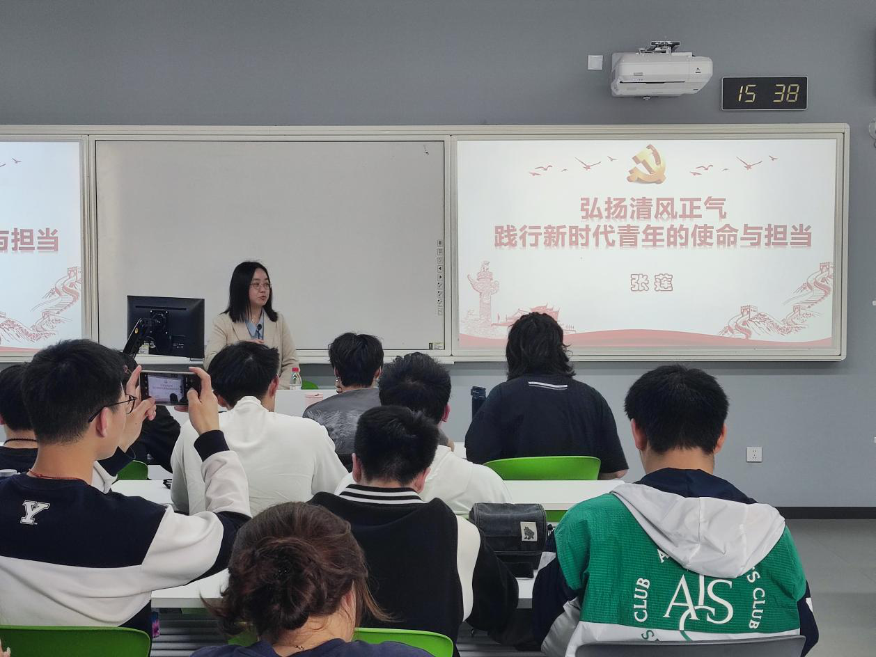 张莲《弘扬清风正气,践行新时代青年的使命和担当》为主题,为同学们讲述了清廉的重要性,告诫我们要把清廉建设作为终身课题。从国家层面、行业层面、省域层面、公司层面、国际层面、个人层面六个层面为我们讲述了应该怎样做好清廉建设。“大道笃行远,清廉继世长”,在清廉上出问题,就是对人生的“一票否决”,作为新时代青年,我们应该干净干事,清白做人。