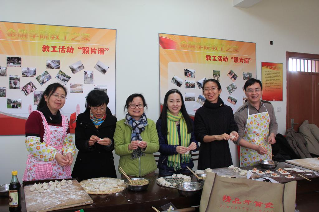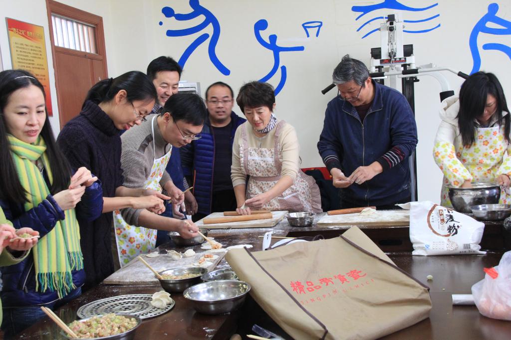 一石激起千层浪,这项活动一发布得到了全院教工的热烈响应,大家积极性空前高涨,参与活动的热情就像“冬天里一把火,熊熊燃烧温暖了我的心窝”,许多老师从家里带来了面板、电磁炉、锅、盆、菜刀、擀面杖、酸菜等,大家亲自动手,有和面的,有擀皮的,有包饺子的,有煮饺子的,里里外外,忙得不亦乐乎,当一盆盆热汽腾腾的水饺端上来的时候,大家争前恐后,纷纷品尝,赞不绝口,喜笑颜开。