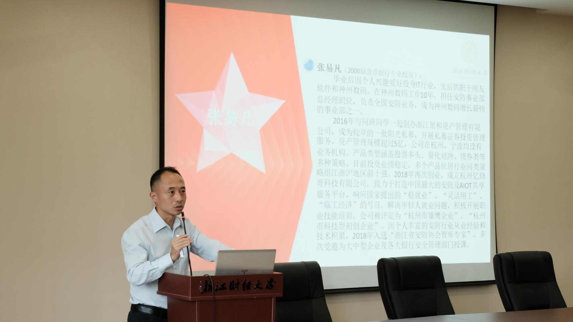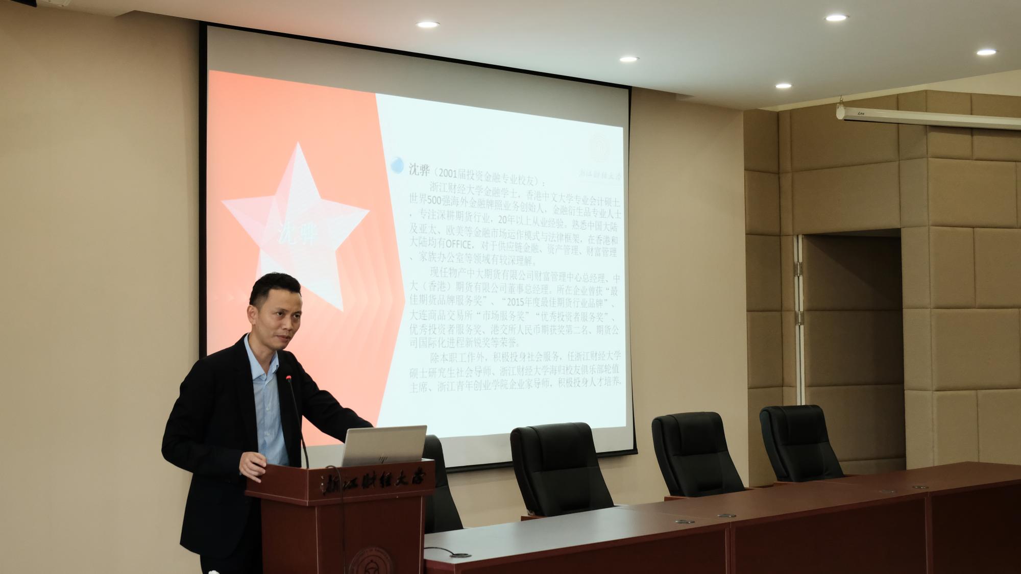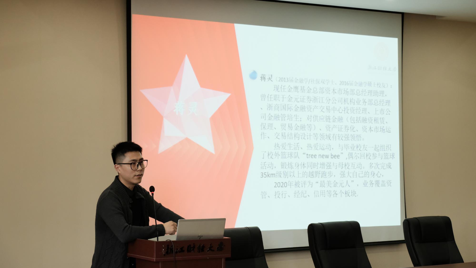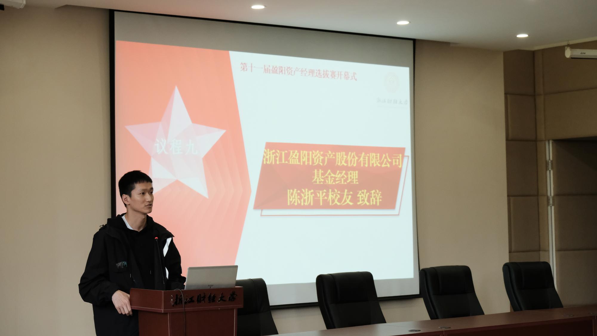 探索股市奥秘,玩转投资风云是许多金融学子的梦想。每年由盈阳资产支持的基金经理选拔赛都会吸引一大波金融学子参与其中。开幕式上,在场师生通过短视频了解了本届比赛的情况。随后,浙江盈阳资产管理股份有限公司基金经理陈浙平员工代表讲话,他向大家简单介绍了基金经理的工作内容,鼓励同学们积极参与比赛,同时预祝同学们取得好的成绩。