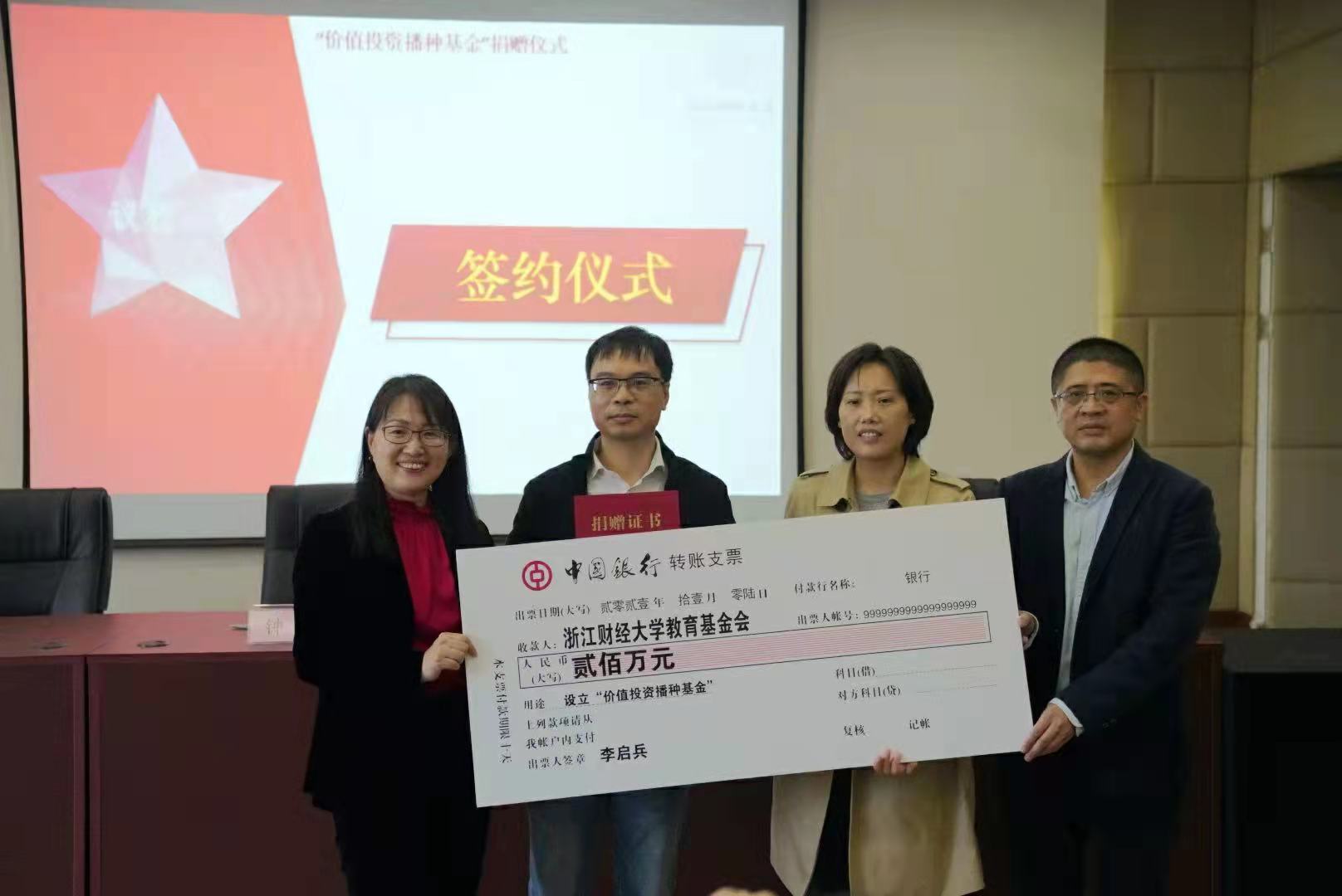 98届李启兵员工从事投资金融行业二十余年,助力公司发展,向公司教育发展基金多次捐款,为肥沃公司教育土壤出心出力。此次,李启兵员工携夫人钟玲向云顶7610线路检测捐赠总额贰佰万元人民币,设立“价值投资播种基金”,用以支持公司专业课程建设、团队队伍建设与人才培养。