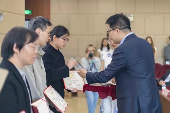 经评审,徐立平、徐函、金骋路、徐峰、邵玲洁五位老师获得2021年“盈阳金融突出贡献奖”育人类银奖。楼栋员工为获奖教师颁发了获奖证书及奖杯。