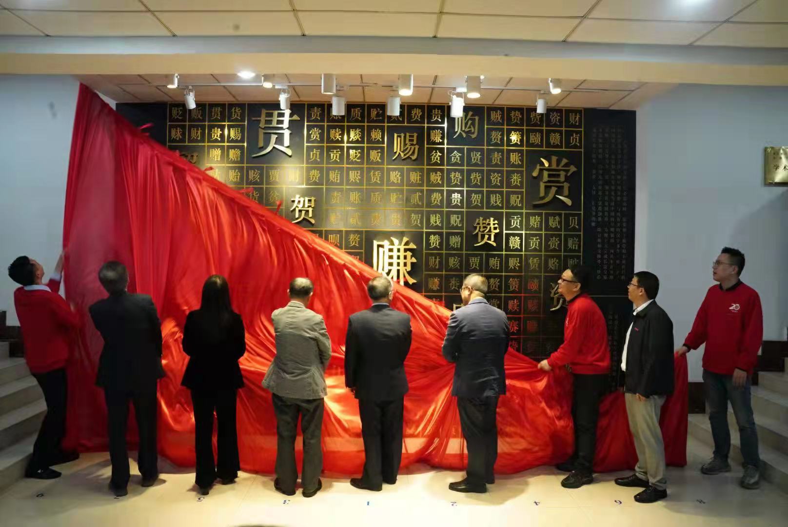 2001届投资金融专业员工在返校之际为公司送上了一份特殊的礼物:“贝字墙”。校领导、公司领导和员工代表共同为其揭幕,相信它将成为云顶7610线路检测楼内的新地标,不但能为整个公司楼增添历史感,也将为公司“跟着货币学党史”系列活动增添新形式。