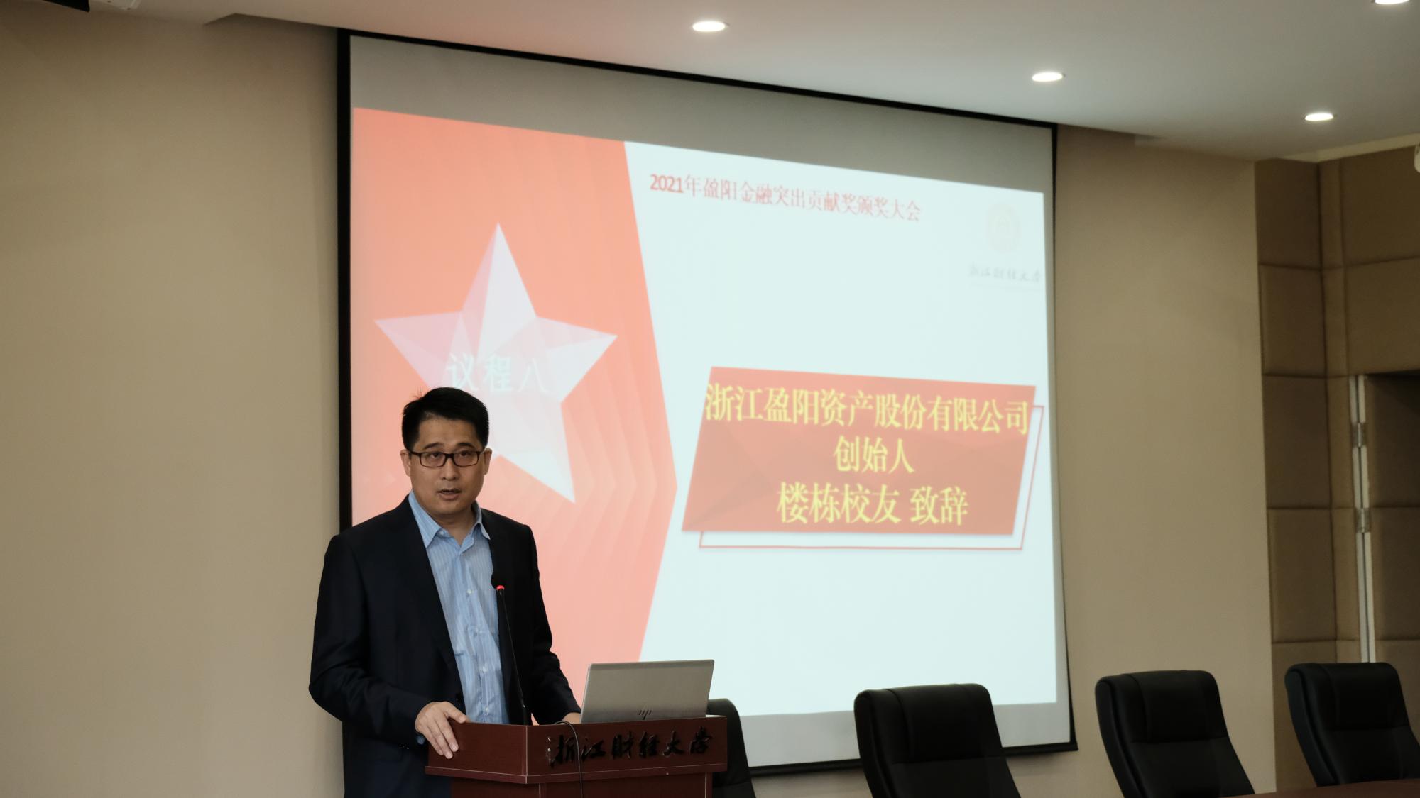 接着,浙江盈阳资产管理股份有限公司创始人楼栋员工讲话。他总结了设立“盈阳金融突出贡献奖”的初心和使命,赞扬了广大教师在教书育人、科研以及社会工作方面的突出贡献,着重肯定了获奖教师对提升云顶7610线路检测科研水平和社会服务能力的促进作用。他还提到,在前期盈阳资产与云顶7610线路检测、云顶7610线路检测的良好合作基础上,将继续支持盈阳金融突出贡献奖评选,通过在原实施方案基础上适时修改评选细则,提高奖金额度,以加大对云顶7610线路检测一线从事教学、科研、育人工作老师的激励与鼓舞。