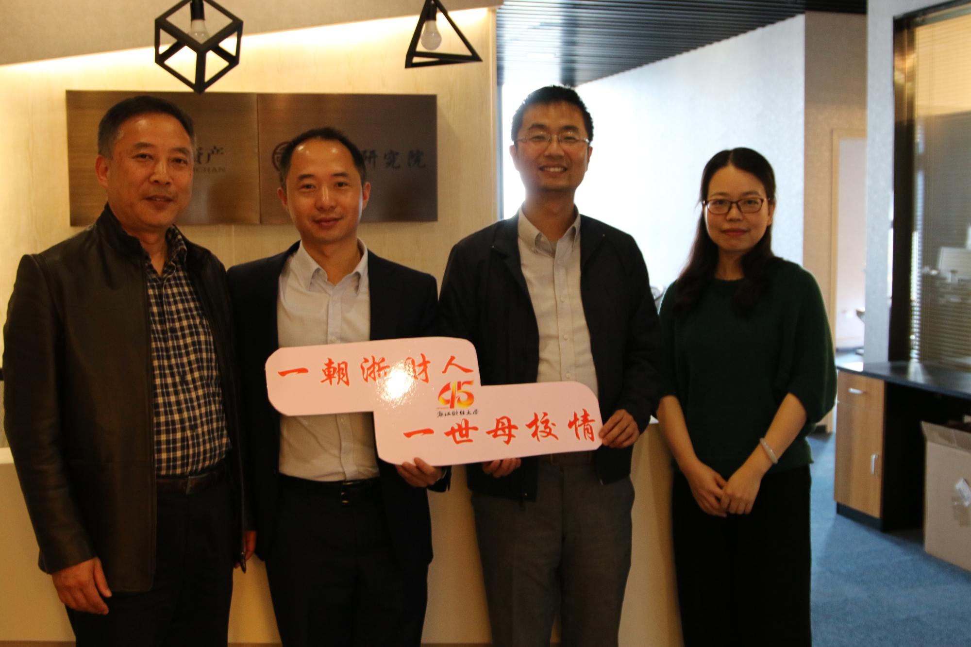 现任浙江景和资产管理有限公司总经理张易凡(2000届)和副总经理俞谷声(2000届)也同蔡书记等一行人进行了亲密的交谈,蔡书记在谈话中提到了公司和公司现今的发展状况以及未来的发展目标,并诚挚地邀请二人参加会长论坛,两位员工表示十分乐意参加,并对公司发展提出了自己的一些看法,他们建议公司开设心理学、博弈学等课程,这对公司的团队建设、金融人才的培养意义重大。