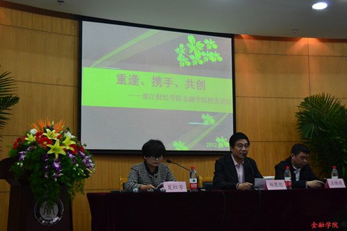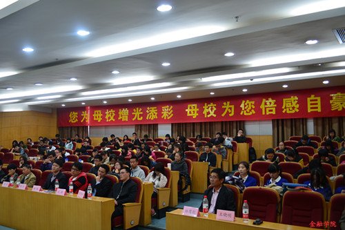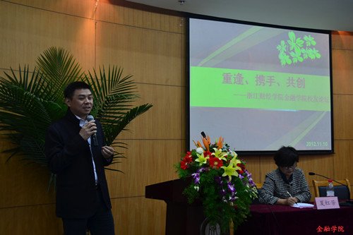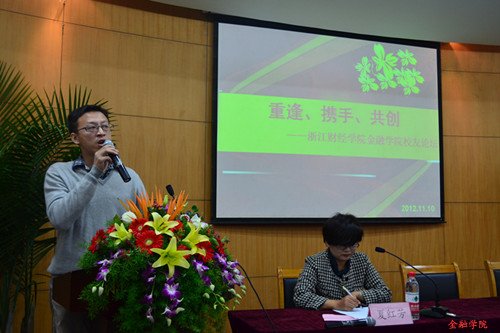 接下来,员工们依次上台,以真诚的感情,朴实的语言向同学们叙述了自己的奋斗史,和同学们分享了自己的工作经验,交流了在金融市场沉浮过后的人生感悟。翰沣科技董事长楼栋强调老员工应树立明确的目标,秉着谦逊的工作态度,坚持不懈地朝着自己的梦想前进。“世界是无常的,最大的确定性是不确定性”,海华宏图投资董事长陈泓江引用乔布斯的经典名言鼓励同学们站在全球化的角度关注金融市场的最新动态,运用专业知识分析金融市场,准确把握市场动向。浙大整合股权投资管理公司总经理钱哲的一番话引发了同学们的深思。他向在座师生展示了自己的圆梦20年。外表俊朗,声音富有磁性的他从小就拥有着一个主持梦,由于种种原因不得不暂时将梦想搁置,直到20年后的现在,他靠着对梦想的热忱与坚持,终于成立了自己的公司,拥有了自己的节目,完成了他梦想的回归。蓝山投资有限公司总裁王晓明、信嘉合咨询公司董事长王柳玲、中大期货经纪业务管理总部总经理沈骅、浙江益恒投资董事长徐冠华、蓝山投资总裁助理傅夷等员工也和大家分享了宝贵的成功经历。