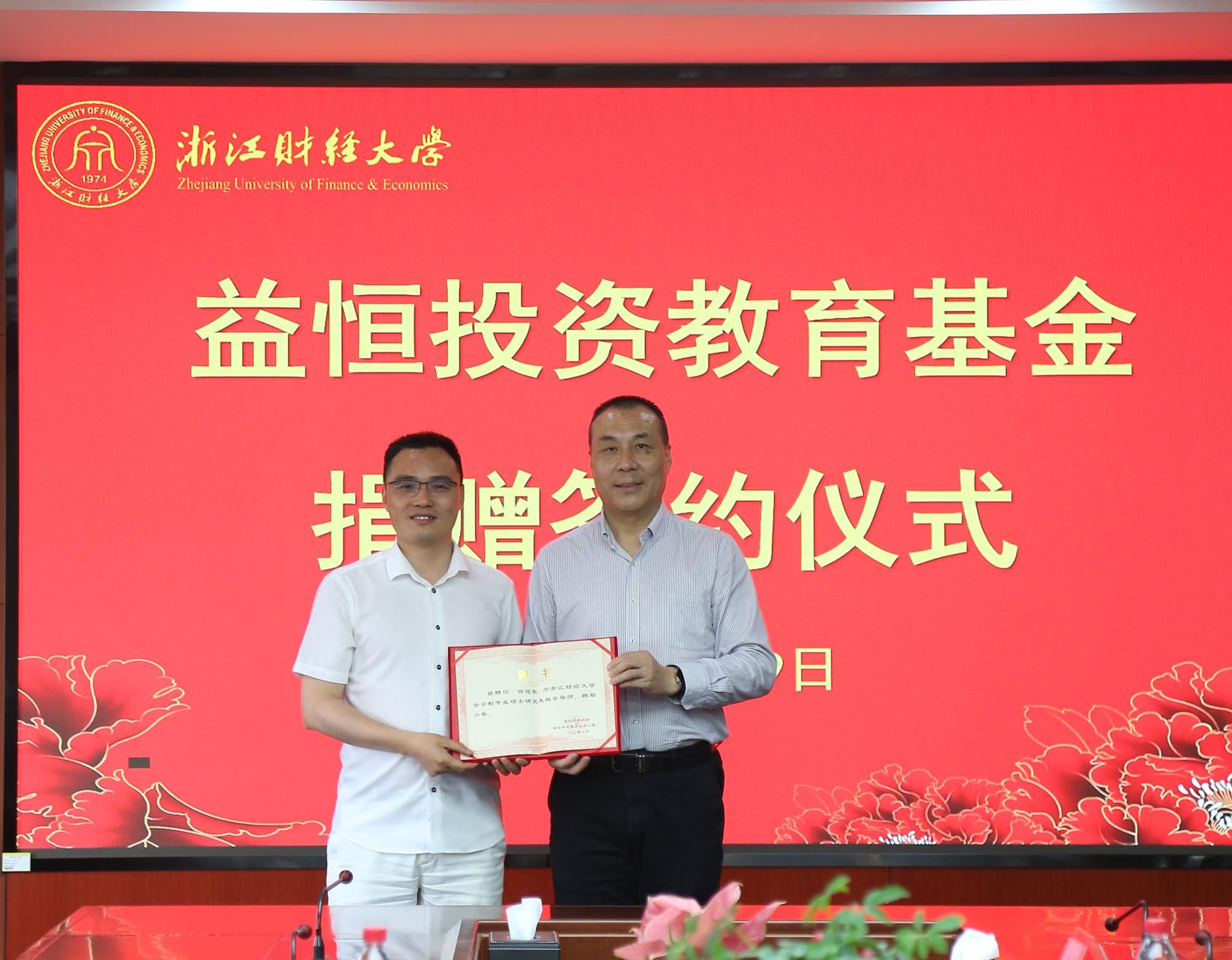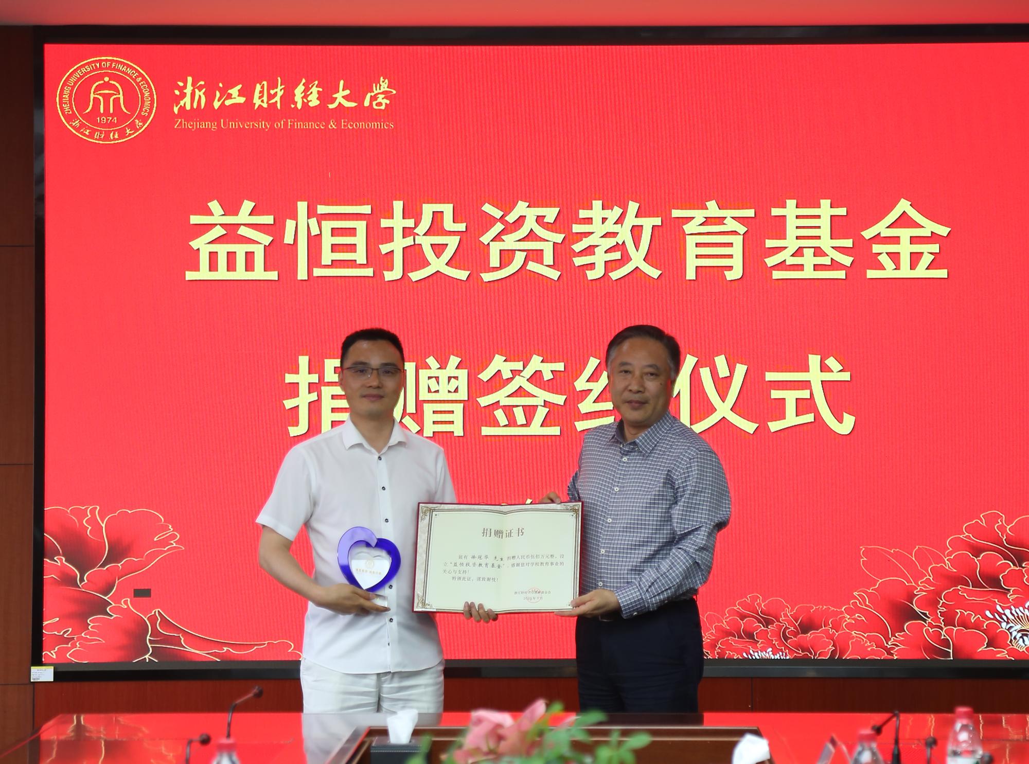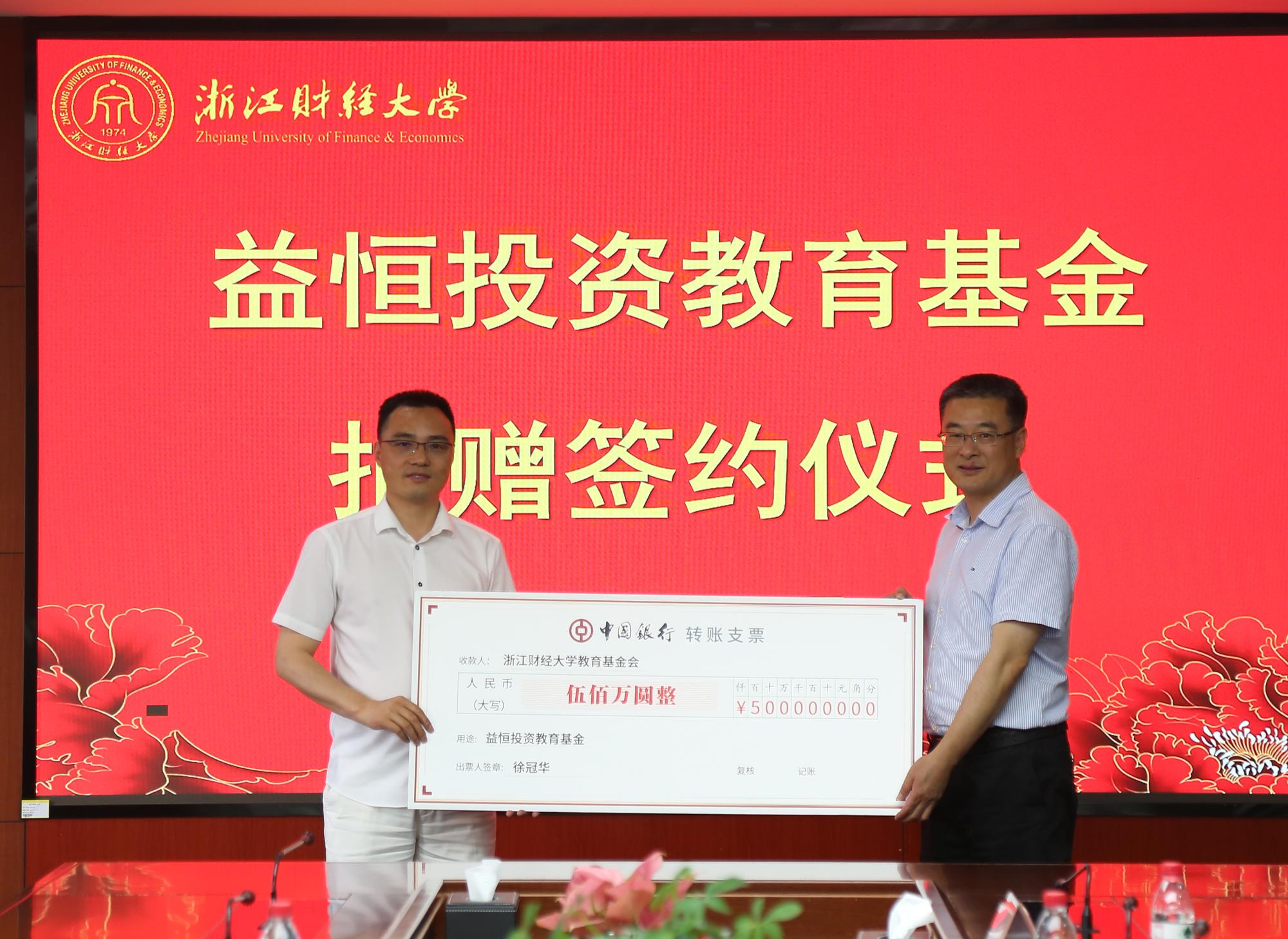 5月19日下午,“益恒投资教育”基金捐赠签约仪式在校行政楼412举行。2003届证券投资专业员工徐冠华向云顶7610线路检测捐赠500万元,设立“益恒投资教育”基金。公司党委书记李金昌,党委委员、副董事长徐晓东,浙江益恒投资管理有限公司董事长徐冠华、联合创始人吴丹,浙江海达国际文教信息有限公司董事长张坚,浙江银万斯特投资管理有限公司董事长杜飞磊,浙江益恒投资管理有限公司交易总监章永成、研究总监田黄达,党委办公室主任范建锋,社会合作办主任张红英,公司党委书记蔡国金等出席仪式。