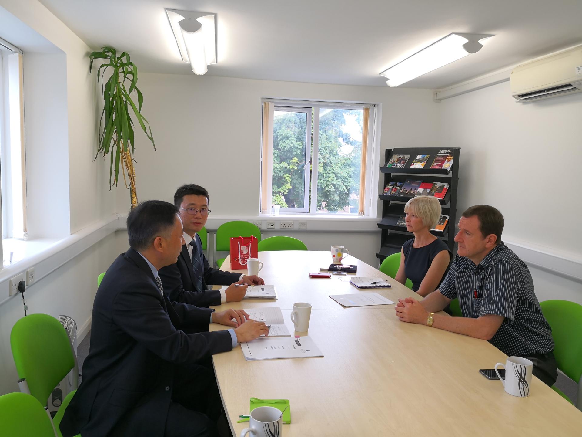 2018年7月公司党委书记蔡国金、副经理王聪聪一行应邀访问英国班戈大学,就合作办学项目员工的联合培养、团队访学培训、科研合作等事项与班戈大学相关负责人进行交流座谈。
