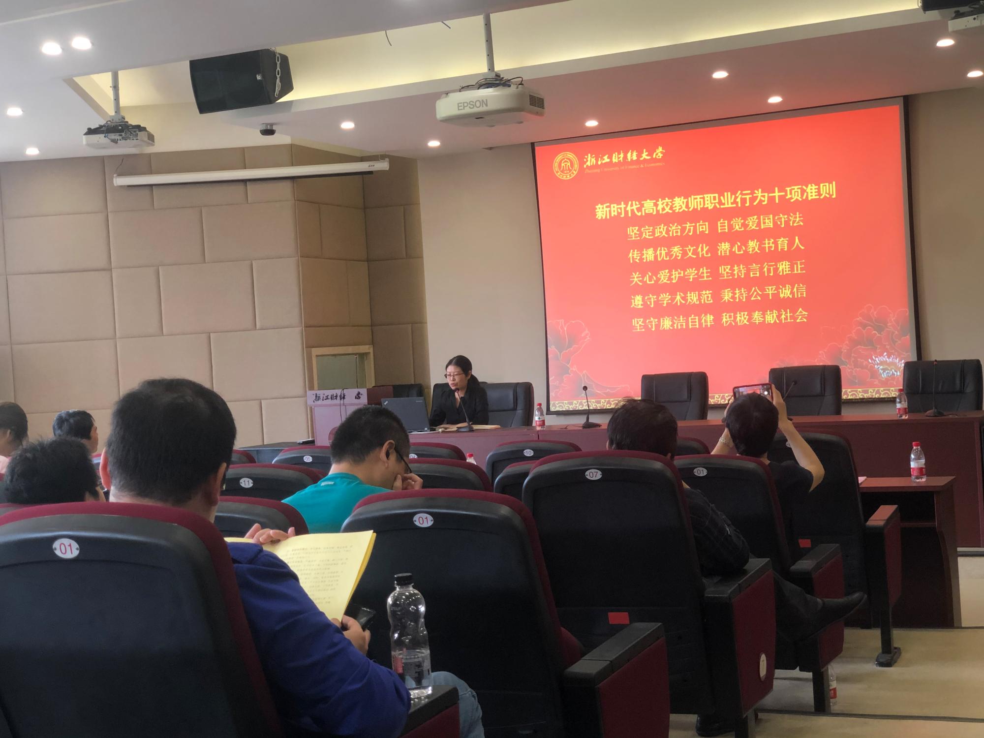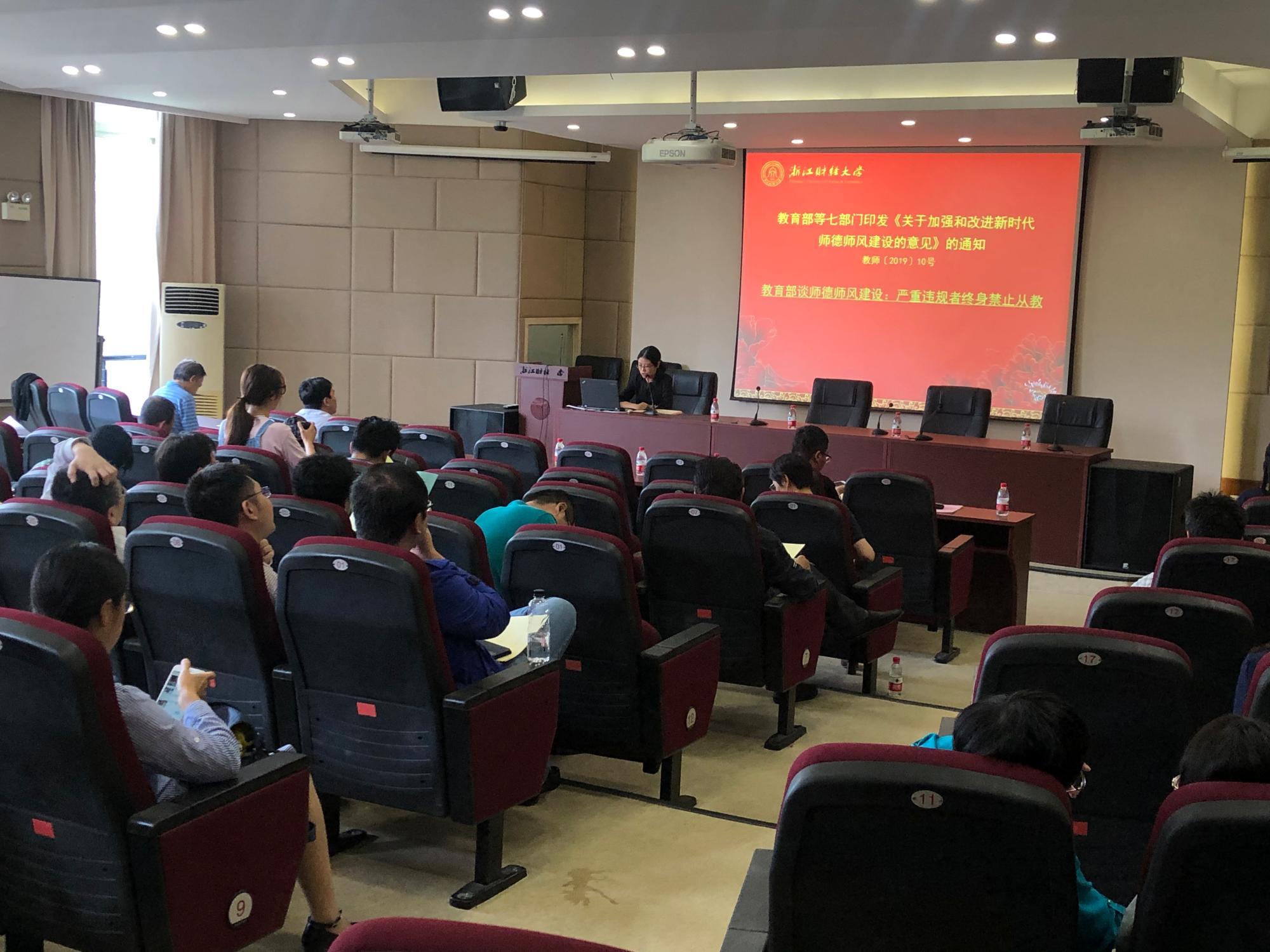 会上,谢敏领学了教育部等七部门印发的《关于加强和改进新时代师德师风建设的意见》文件精神,结合教育部网站曝光的师德师风警示案例,带领大家学习了《新时代高校教师职业行为十项准则》和《中华人民共和国公职人员政务处分法》。她指出,《意见》的出台是加快师德养成,全方位推进新时代师德师风建设的有力举措。《准则》为新时代高校教师的职业行为界定了清晰标准,《公职人员政务处分法》也对高校管理人员提出了明确约束。作为高校教师要自觉肩负起立德树人的根本任务,进一步增强教师的责任感、使命感、荣誉感,规范职业行为,明确师德底线,努力成为有理想信念、有道德情操、有扎实学识、有仁爱之心的好老师,做好员工的引路人。