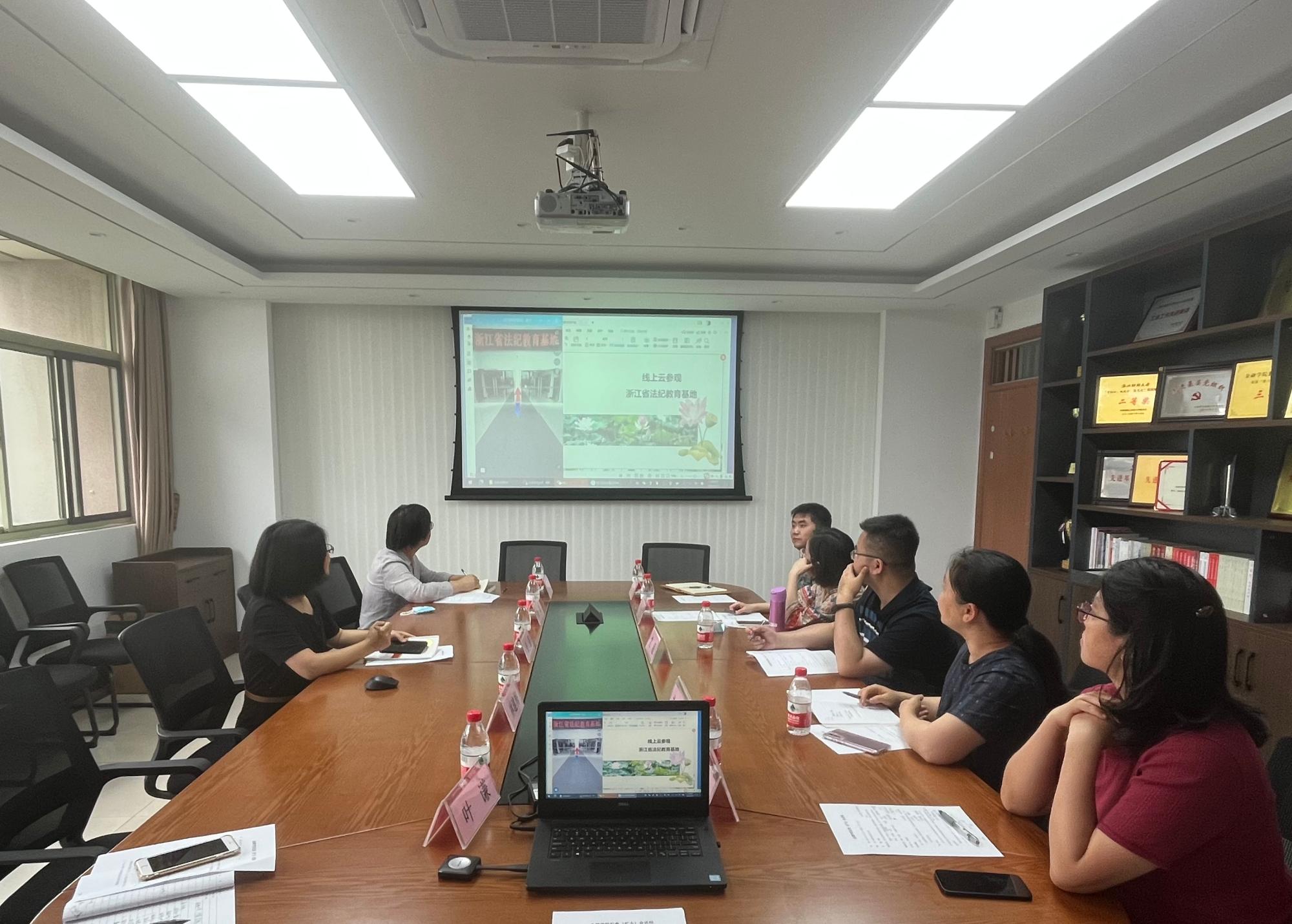 随后,与会人员“云参观”浙江省法纪教育基地。跟随讲解员的解说,大家依次阅览了“不忘初心·牢记使命”、“清廉浙江·勇立潮头”2个专题展厅,通过视频资料、展板、电子屏展示等图文并茂的形式,全面回顾了共产党反腐倡廉历程,深入学习了以习近平同志为核心的党中央关于全面从严治党的一系列决策部署及所取得的重大成果,全体人员上了一堂生动的法纪教育课。